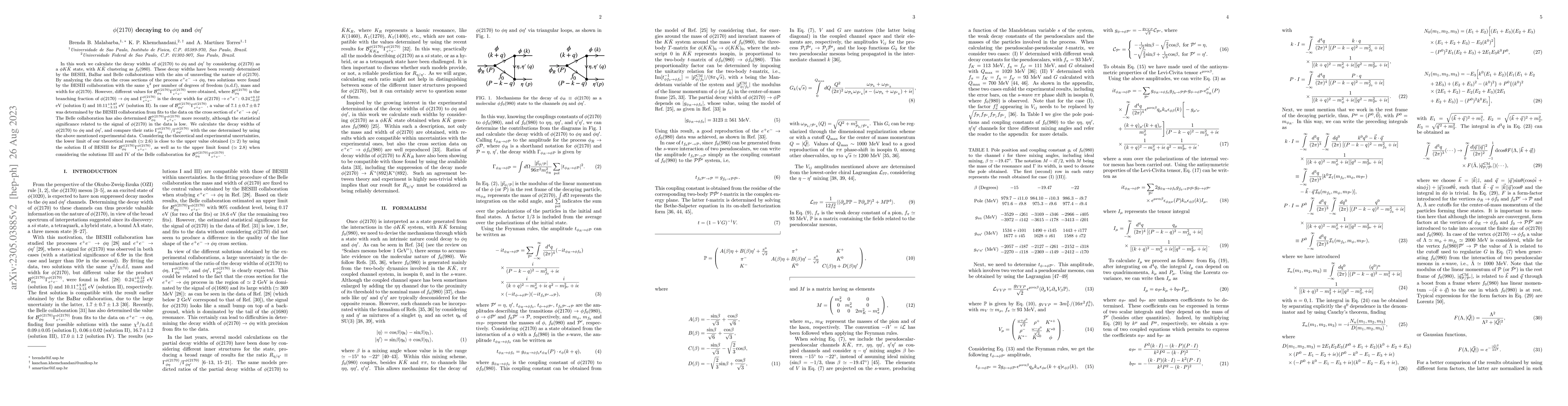 In this work we calculate the decay widths of $\phi(2170)$ to $\phi\eta$ and $\phi\eta^\prime$ by considering $\phi(2170)$ as a $\phi K\bar K$ state, with $K\bar K$ clustering as $f_0(980)$. These decay widths have been recently determined by the BESIII, BaBar and Belle collaborations with the aim of unraveling the nature of $\phi(2170)$. By analyzing the data on the cross sections of the process $e^+e^-\to\phi\eta$, two solutions were found by the BESIII collaboration with the same $\chi^2/n.d.f$, mass and width for $\phi(2170)$. However, different values for $\mathcal{B}^{\phi(2170)}_{\phi\eta}\Gamma^{\phi(2170)}_{e^+e^-}$ were obtained: $0.24^{+0.12}_{-0.07}$ eV (solution I) and $10.11^{+3.87}_{-3.13}$ eV (solution II). In case of $\mathcal{B}^{\phi(2170)}_{\phi\eta^\prime}\Gamma^{\phi(2170)}_{e^+e^-}$, a value of $7.1\pm 0.7\pm 0.7$ was determined by the BESIII collaboration from fits to the data on the cross section of $e^+e^-\to\phi\eta^\prime$. The Belle collaboration has also determined $\mathcal{B}^{\phi(2170)}_{\phi\eta}\Gamma^{\phi(2170)}_{e^+e^-}$ more recently, although the statistical significance related to the signal of $\phi(2170)$ in the data is low. We calculate the decay widths of $\phi(2170)$ to $\phi\eta$ and $\phi\eta^\prime$, and compare their ratio $\Gamma^{\phi(2170)}_{\phi \eta}/\Gamma^{\phi(2170)}_{\phi \eta^\prime}$ with the one determined by using the above mentioned experimental data. Considering the theoretical and experimental uncertainties, the lower limit of our theoretical result ($\simeq 2.6$) is close to the upper value obtained ($\simeq 2$) by using the solution II of BESIII for $\mathcal{B}^{\phi(2170)}_{\phi\eta}\Gamma^{\phi(2170)}_{e^+e^-}$, as well as to the upper limit found ($\simeq 2.8$) when considering the solutions III and IV of the Belle collaboration for $\mathcal{B}^{\phi(2170)}_{\phi\eta}\Gamma^{\phi(2170)}_{e^+e^-}$.