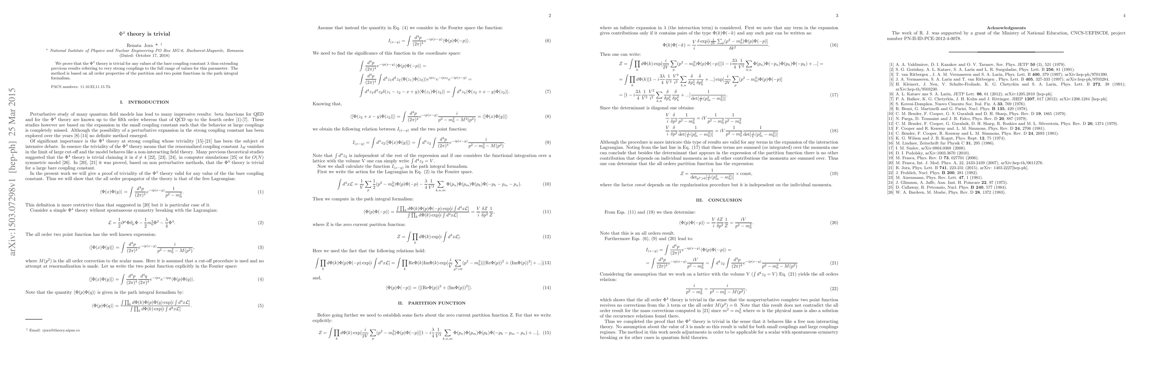 The $ uPhi^4$ theory is proven to be trivial for any value of the bare coupling constant $ u$, meaning it has no free parameters, extending previous results to all values of this parameter.