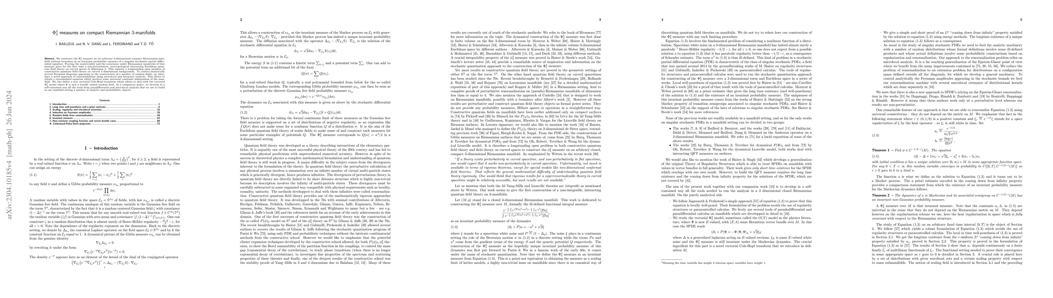 This paper constructs the $\Phi^4_3$ measure on compact Riemannian 3-manifolds as an invariant probability measure for a singular stochastic partial differential equation, establishing the first non-perturbative, non-topological interacting Euclidean quantum field theory in dimension 3. A novel renormalization approach using microlocal and harmonic analysis is introduced to control Feynman diagrams.