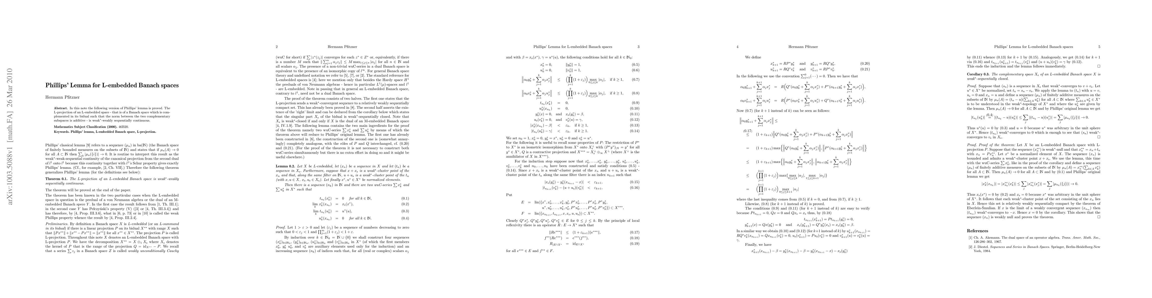 Phillips' Lemma is proved for L-embedded Banach spaces, demonstrating that the L-projection of such spaces is weak-weakly sequentially continuous. This result highlights the continuity properties of projections in specific Banach space structures.