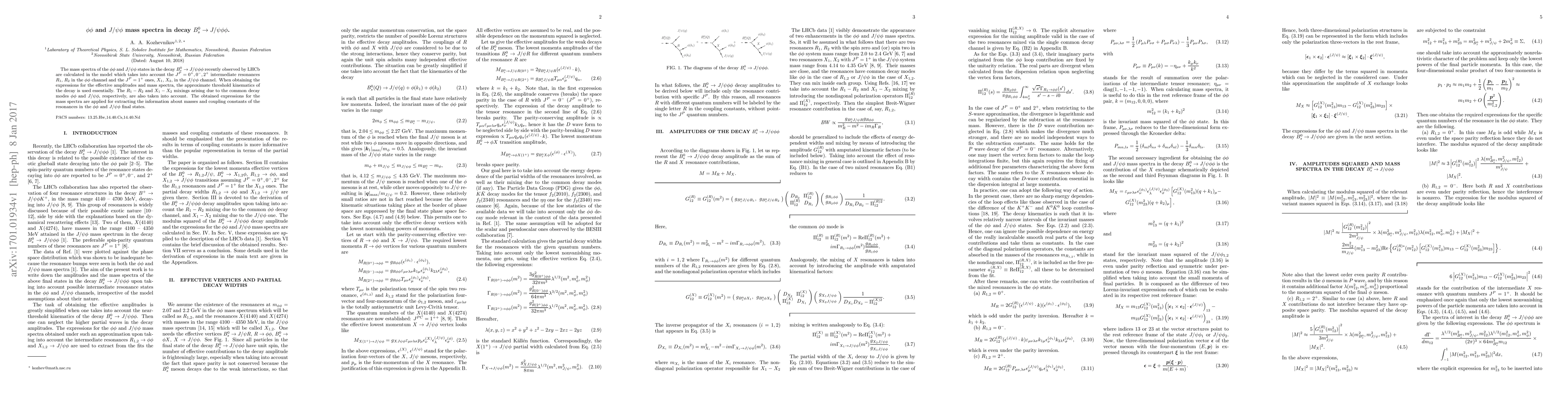 This paper calculates the mass spectra for the $\phi\phi$ and $J/\psi\phi$ states in the $B^0_s\to J/\psi\phi\phi$ decay using a model that considers intermediate resonances and their mixings. The results provide insights into the masses and coupling constants of these resonances.