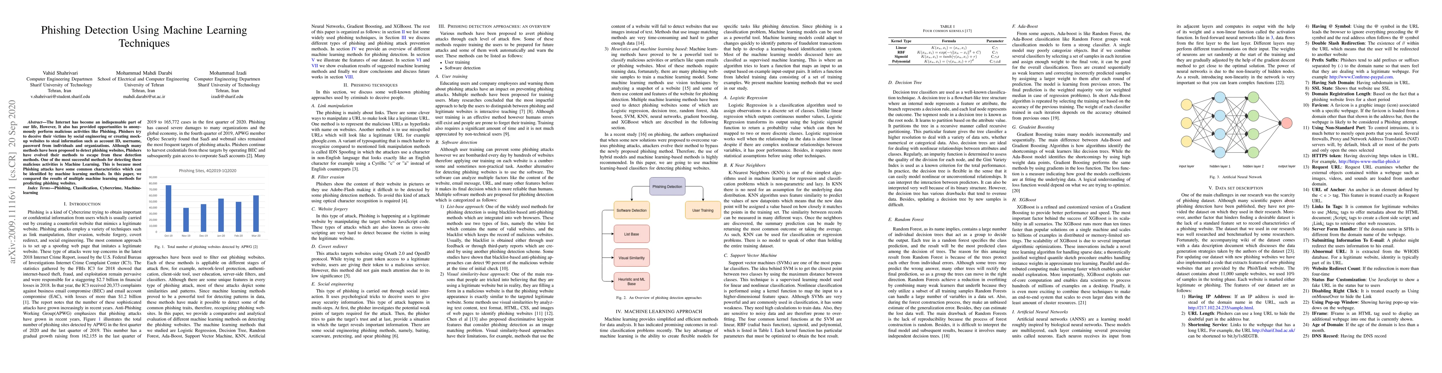 This paper explores the use of machine learning techniques to detect phishing websites, comparing various methods to identify common characteristics of phishing attacks. The study highlights the effectiveness of machine learning in adapting to evolving phishing tactics.