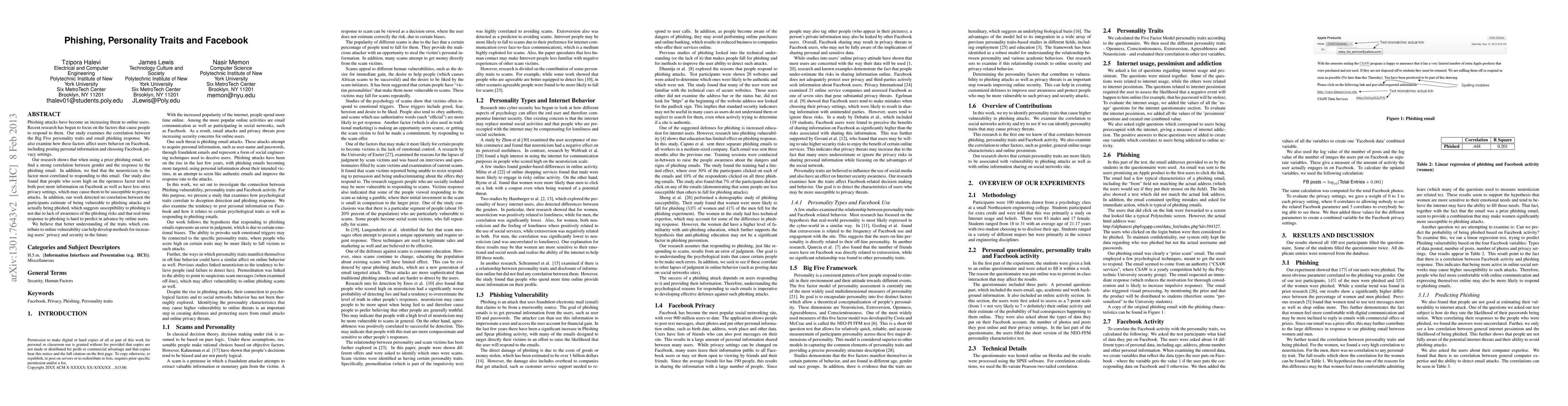 This study investigates the link between the Big Five personality traits and susceptibility to phishing attacks, finding that neuroticism strongly correlates with phishing response. It also reveals that individuals high in openness are more likely to post personal information and have less strict Facebook privacy settings, potentially increasing their vulnerability to privacy attacks.