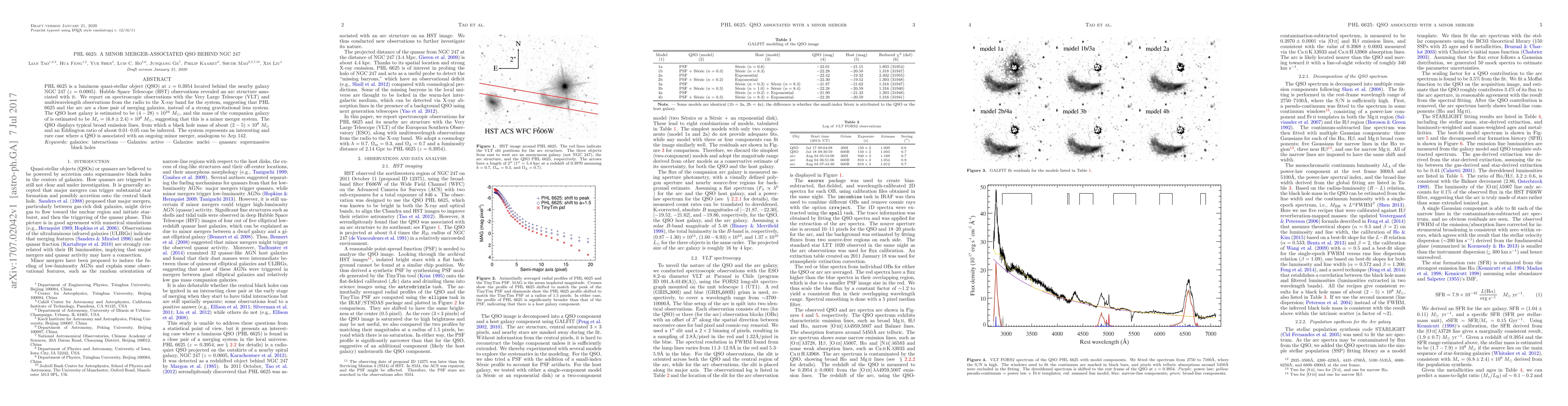 PHL 6625 is a luminous quasi-stellar object (QSO) at z = 0.3954 located behind the nearby galaxy NGC 247 (z = 0.0005). Hubble Space Telescope (HST) observations revealed an arc structure associated with it. We report on spectroscopic observations with the Very Large Telescope (VLT) and multiwavelength observations from the radio to the X-ray band for the system, suggesting that PHL 6625 and the arc are a close pair of merging galaxies, instead of a strong gravitational lens system. The QSO host galaxy is estimated to be (4-28) x 10^10 M_sun, and the mass of the companion galaxy of is estimated to be M_* = (6.8 +/- 2.4) x 10^9 M_sun, suggesting that this is a minor merger system. The QSO displays typical broad emission lines, from which a black hole mass of about (2-5) x 10^8 M_sun and an Eddington ratio of about 0.01-0.05 can be inferred. The system represents an interesting and rare case where a QSO is associated with an ongoing minor merger, analogous to Arp 142.