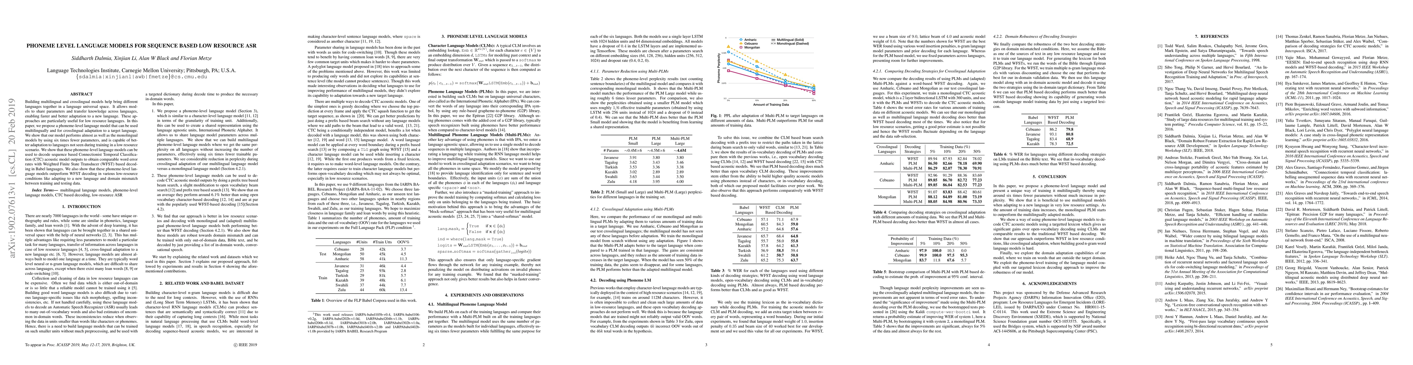 This paper proposes a phoneme-level language model for multilingual and crosslingual adaptation in low-resource ASR, demonstrating comparable performance to monolingual models with significantly fewer parameters. It also shows superior adaptation to unseen languages and outperforms WFST decoding in various low-resource conditions.
