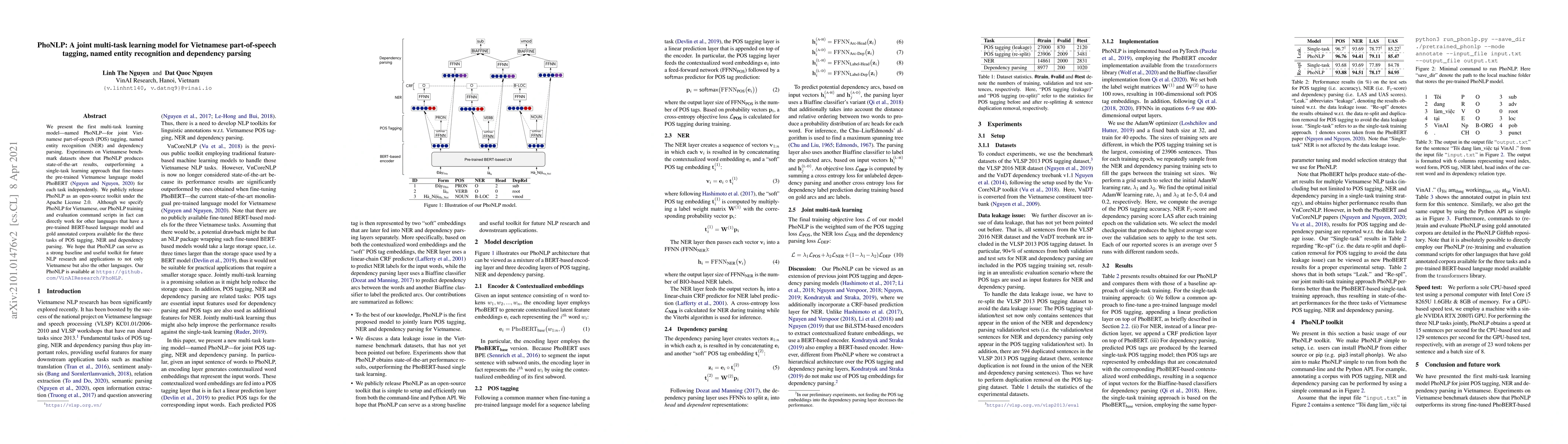 PhoNLP is a multi-task learning model for Vietnamese NLP tasks, achieving state-of-the-art results in POS tagging, NER, and dependency parsing, outperforming single-task models. It is released as an open-source toolkit, potentially adaptable for other languages with similar resources.