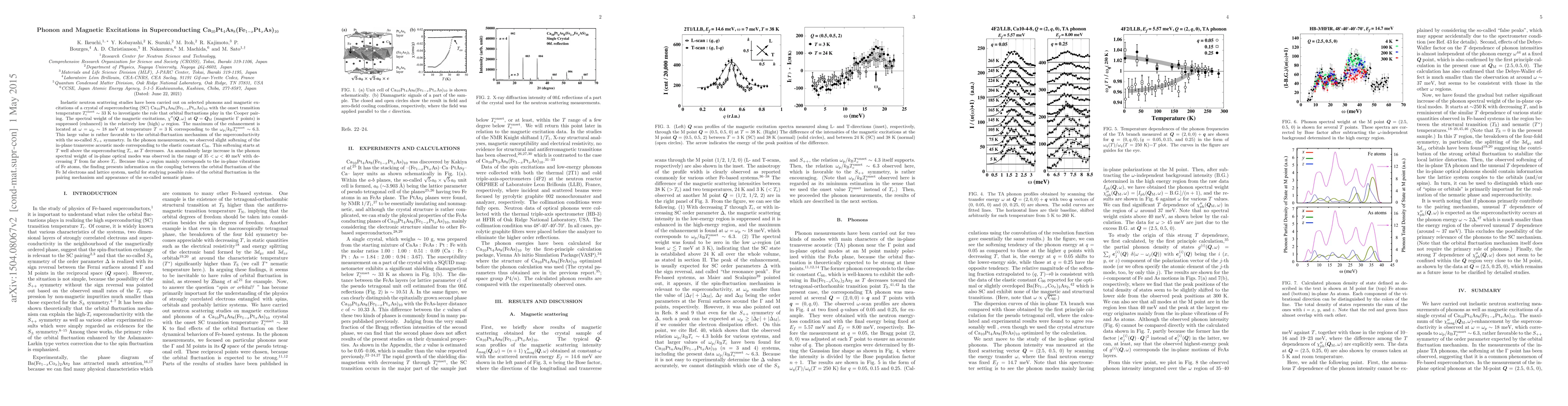 Researchers studied the superconducting material Ca$_{10}$Pt$_4$As$_8$(Fe$_{1-x}$Pt$_x$As)$_{10}$ using inelastic neutron scattering, finding that orbital fluctuations play a key role in Cooper pairing, with a significant enhancement of magnetic excitations at low frequencies.