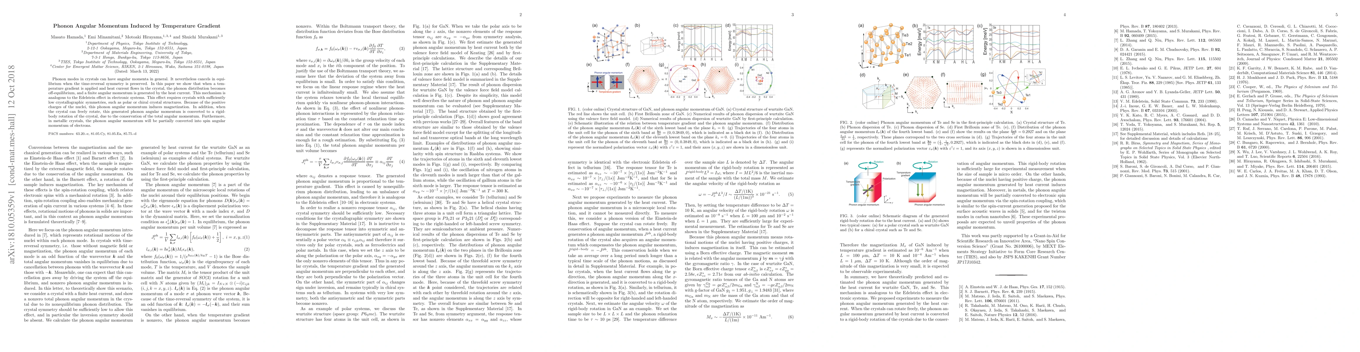 A temperature gradient in crystals can induce a finite angular momentum due to phonons, which is analogous to the Edelstein effect in electronic systems. This effect generates magnetization and can be converted into rigidbody rotation or spin angular momentum of electrons.