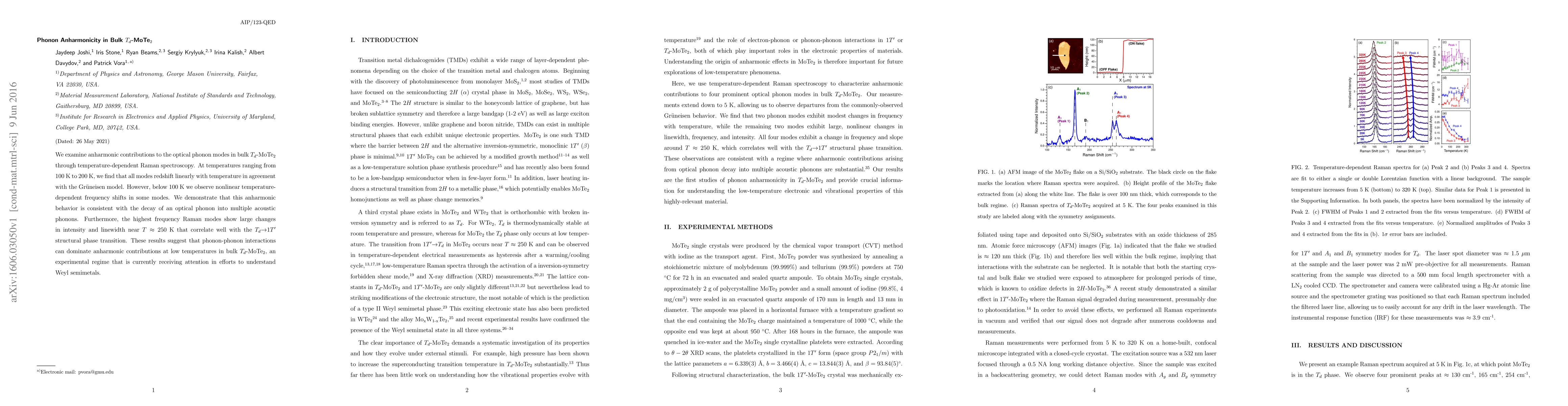 Researchers studied how temperature affects sound waves in a specific material called bulk Td-MoTe2, finding that at low temperatures, these sound waves exhibit non-linear changes and can be explained by the breakdown of other phonon interactions.
