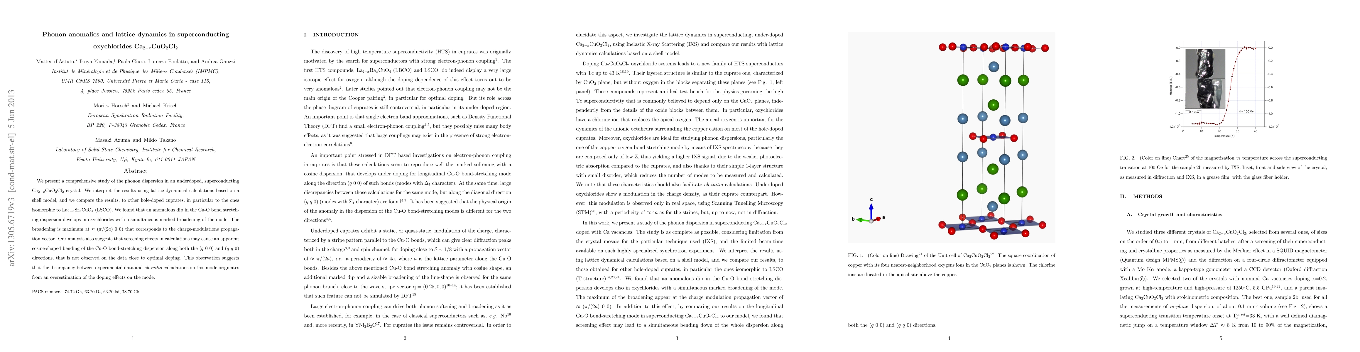 Researchers studied the phonon dispersion in superconducting Ca2-xCuO2Cl2 crystals, finding an anomalous dip in Cu-O bond stretching with broadening of the mode that may be caused by screening effects.