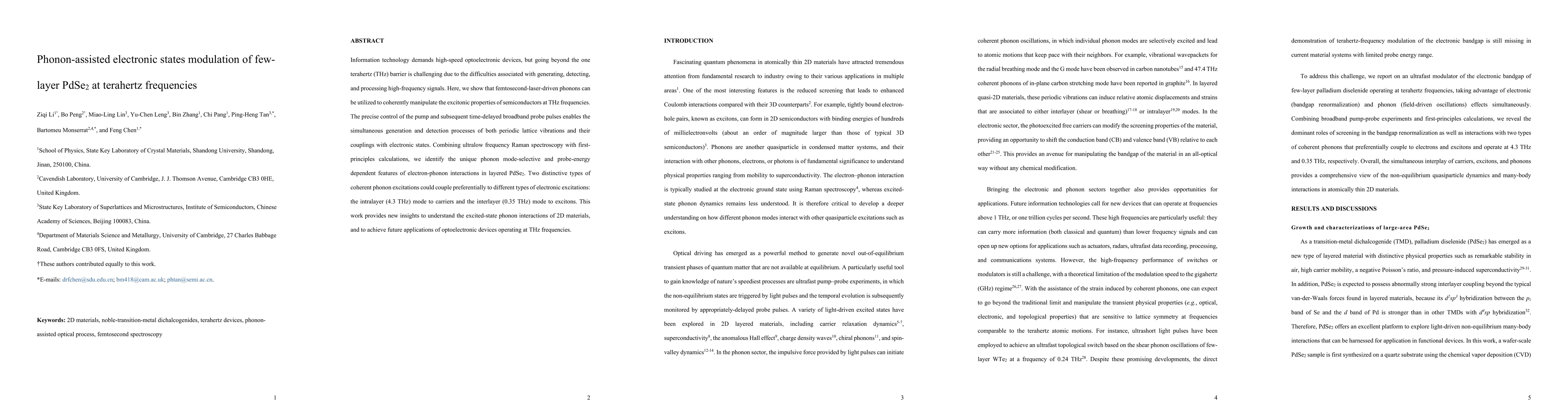 This study demonstrates the use of femtosecond-laser-driven phonons to modulate excitonic properties in few-layer PdSe2 at terahertz frequencies, revealing distinct phonon-electron interactions. The research highlights the potential for phonon-assisted control of electronic states in 2D materials, paving the way for advanced optoelectronic devices.