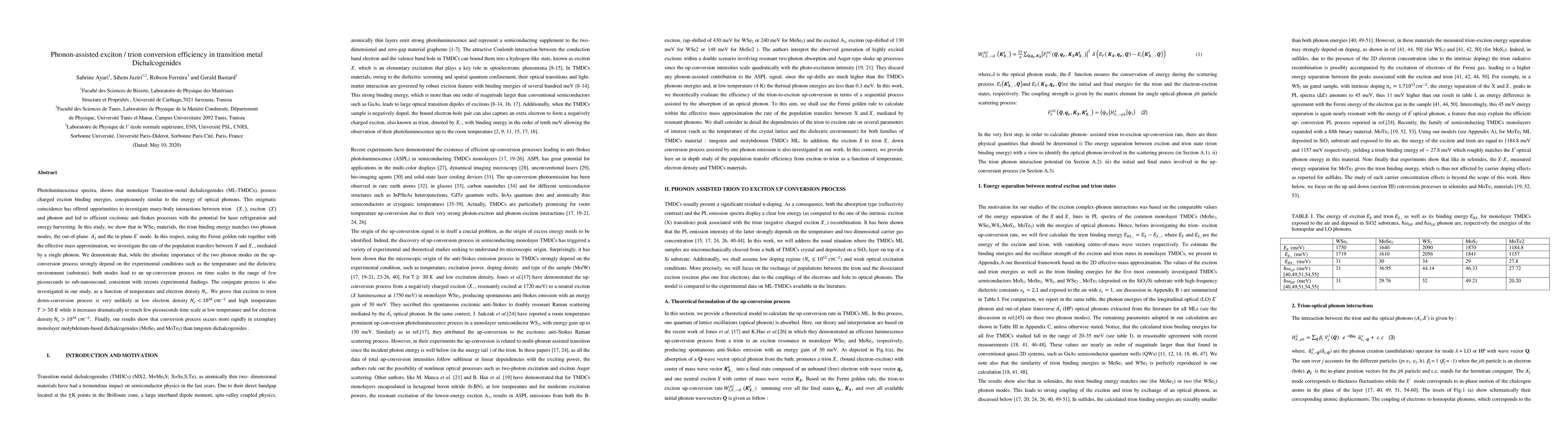 This paper investigates the phonon-assisted conversion between excitons and trions in WSe2 monolayer transition metal dichalcoogenides (MLTMDCs), demonstrating that two phonon modes facilitate rapid upconversion on picosecond to sub-nanosecond time scales. The study also finds that the exciton-to-trion down-conversion process is unlikely at high temperatures and low electron densities but becomes significant at low temperatures and higher electron densities.