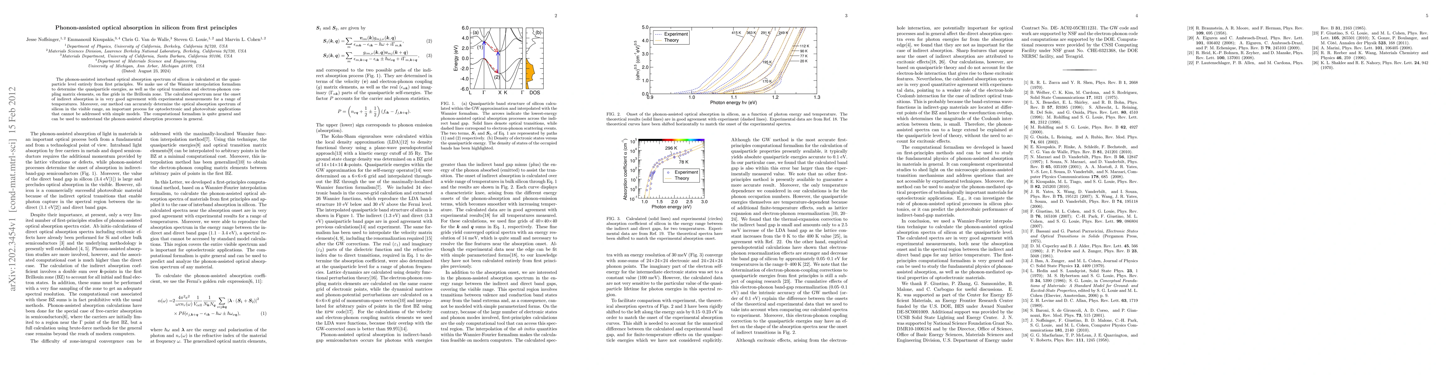 This research calculates the phonon-assisted optical absorption spectrum of silicon using first-principles quasiparticle theory and Wannier interpolation, achieving agreement with experimental data. The method accurately predicts the spectrum in the visible range, crucial for optoelectronic applications.