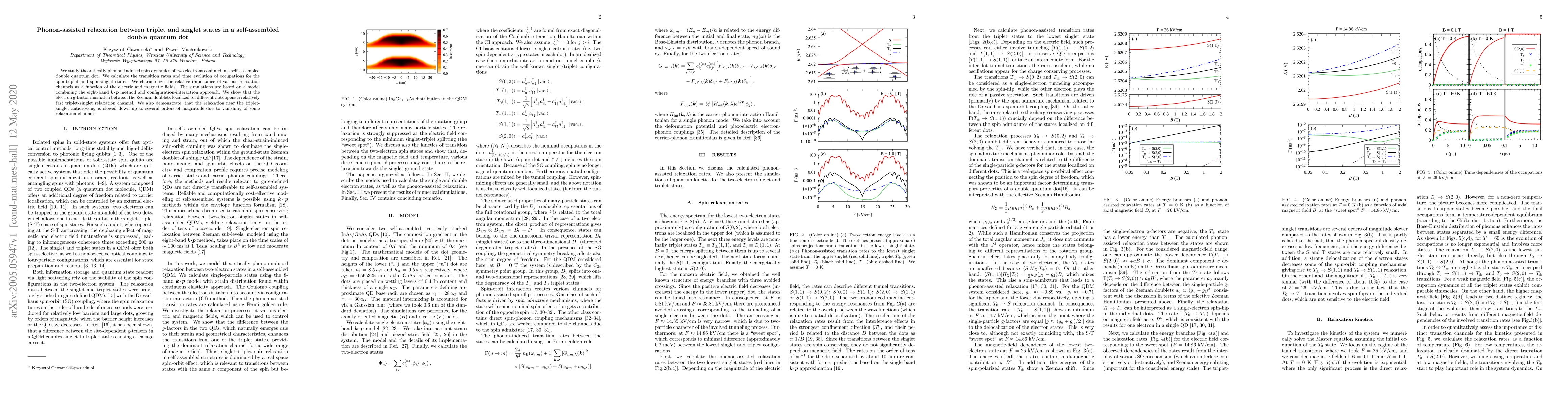 This paper theoretically examines phonon-induced spin dynamics in a self-assembled double quantum dot, showing that electron g-factor mismatch facilitates rapid triplet-singlet relaxation, while relaxation near the anticrossing is significantly slowed due to the disappearance of certain pathways. The study combines eight-band k.p method and configuration-interaction approach to model the system.