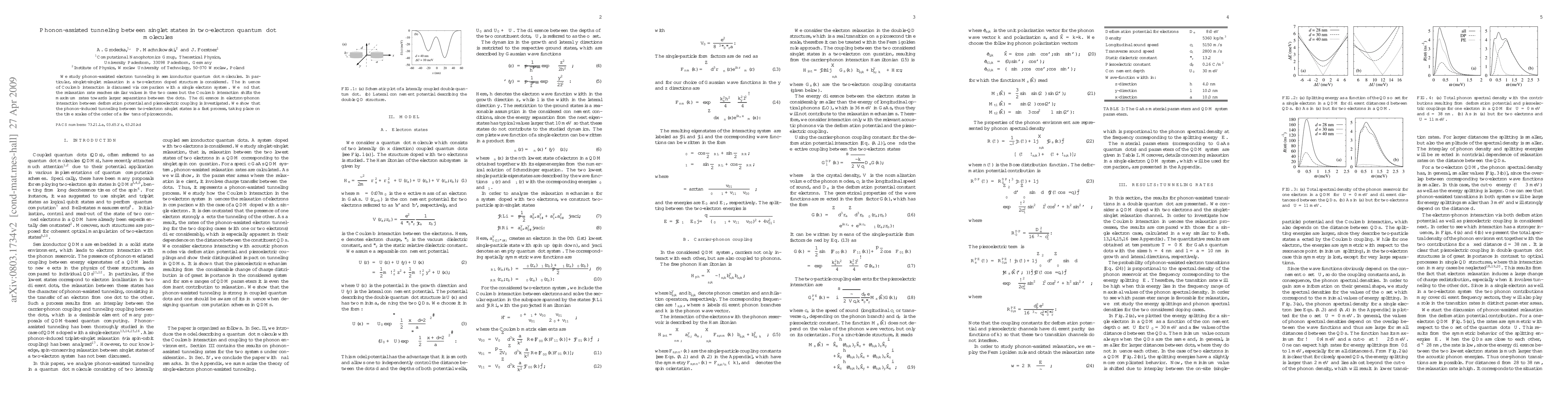 Summary: This study investigates phonon-assisted electron tunneling in semiconductor quantum dot molecules, focusing on singlet-singlet relaxation in two-electron systems. The research finds that despite similar relaxation rates in single and two-electron systems, Coulomb interaction shifts peak rates to larger dot separations, while phonon-induced tunneling occurs rapidly, on timescales of tens of picoseconds.