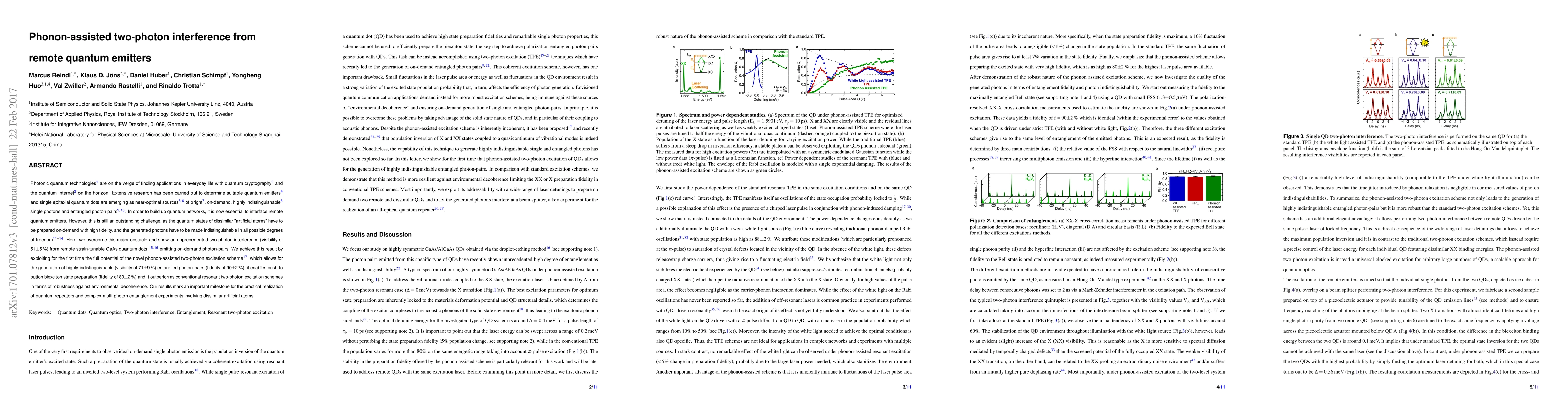 This paper demonstrates unprecedented phonon-assisted two-photon interference from remote GaAs quantum dots, achieving a visibility of 51% and showing potential for quantum networking. The novel excitation scheme enhances entangled photon pair generation, state preparation fidelity, and robustness against decoherence.
