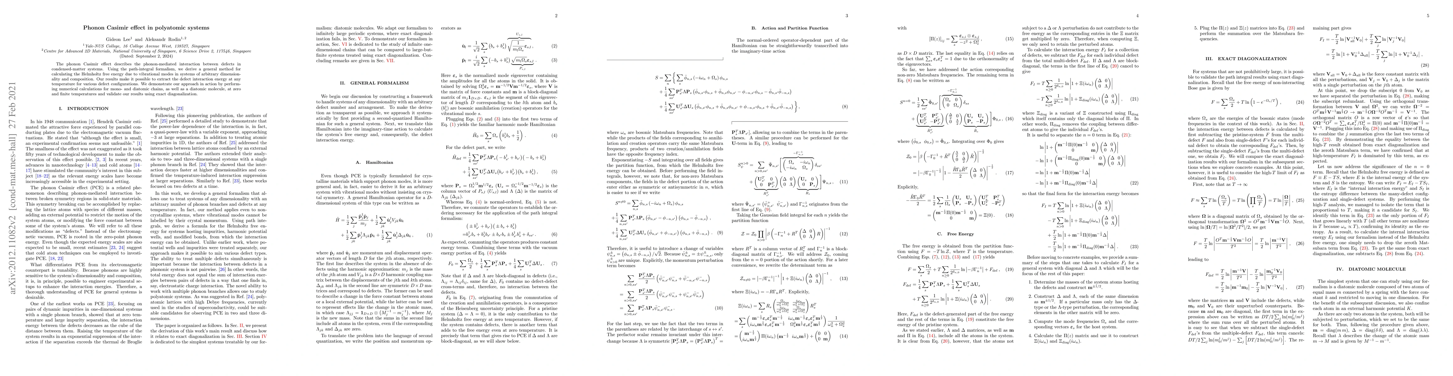 The phonon Casimir effect describes the phonon-mediated interaction between defects in condensed-matter systems. Using the path-integral formalism, we derive a general method for calculating the Helmholtz free energy due to vibrational modes in systems of arbitrary dimensionality and composition. Our results make it possible to extract the defect interaction energy at any temperature for various defect configurations. We demonstrate our approach in action by performing numerical calculations for mono- and diatomic chains, as well as a diatomic molecule, at zero and finite temperatures and validate our results using exact diagonalization.