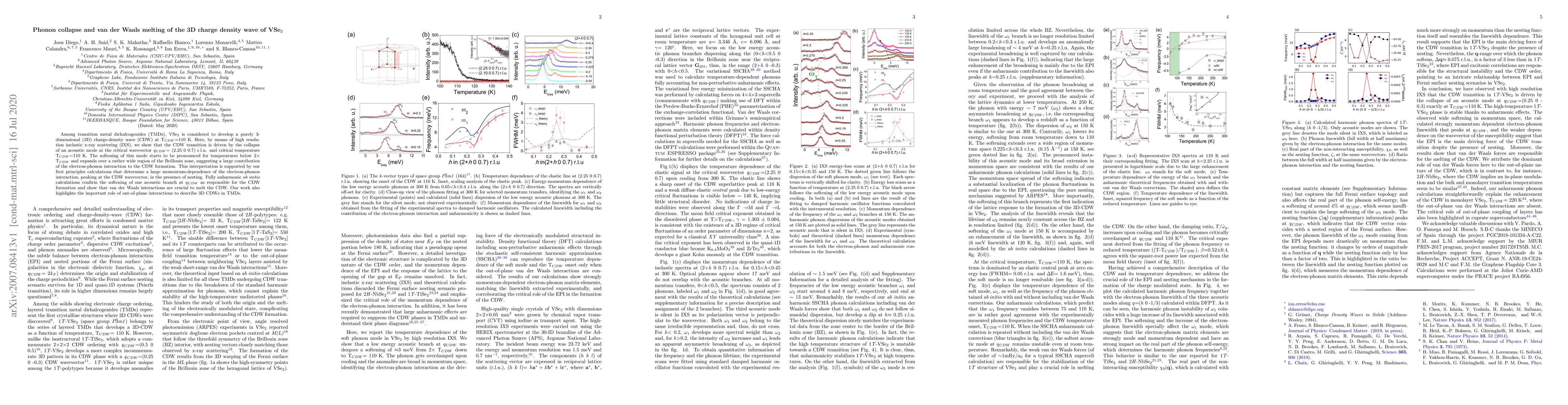 Researchers used inelastic x-ray scattering to study the 3D charge density wave in VSe2, finding that it collapses into a van der Waals melting point at 110K, driven by electron-phonon interactions and out-of-plane interactions.