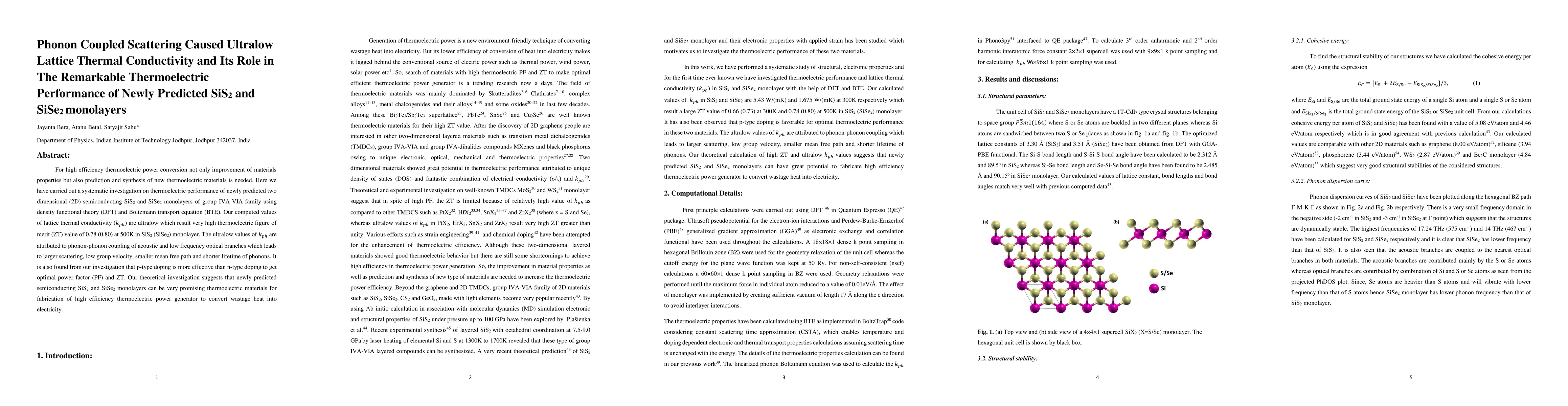 This paper investigates the thermoelectric performance of newly predicted 2D SiS2 and SiSe2 monolayers, finding ultralow lattice thermal conductivity due to phonon-phonon coupling, leading to high thermoelectric figure of merit (ZT). P-type doping is shown to be more effective, suggesting these materials are promising for efficient thermoelectric power generation.