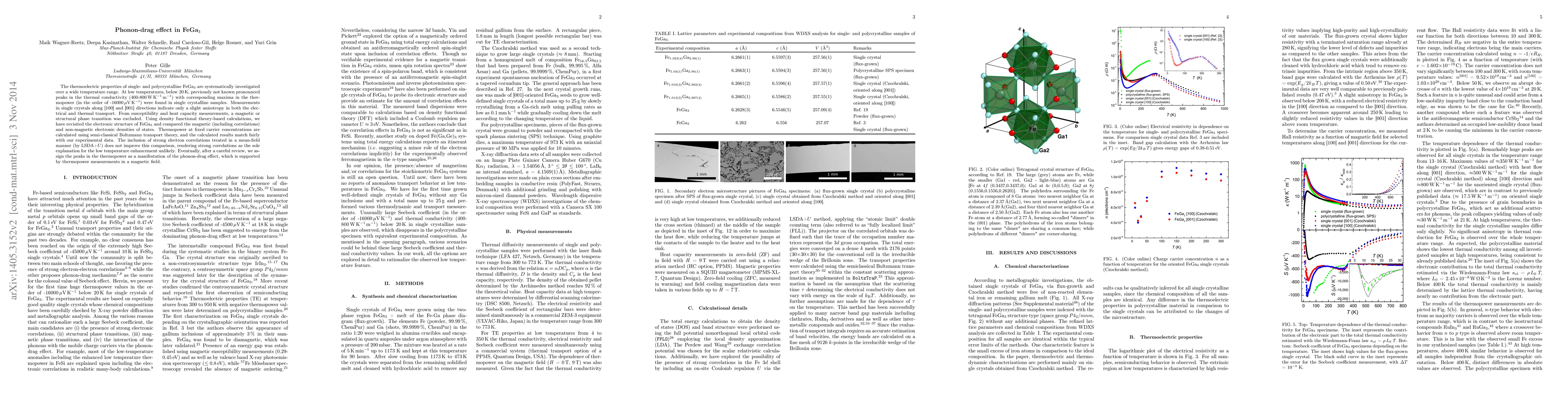 Researchers investigated FeGa3's thermoelectric properties and found pronounced peaks in thermal conductivity and thermopower at low temperatures, attributed to the phonon-drag effect. These findings suggest that strong electronic correlations may not be necessary to explain this phenomenon.