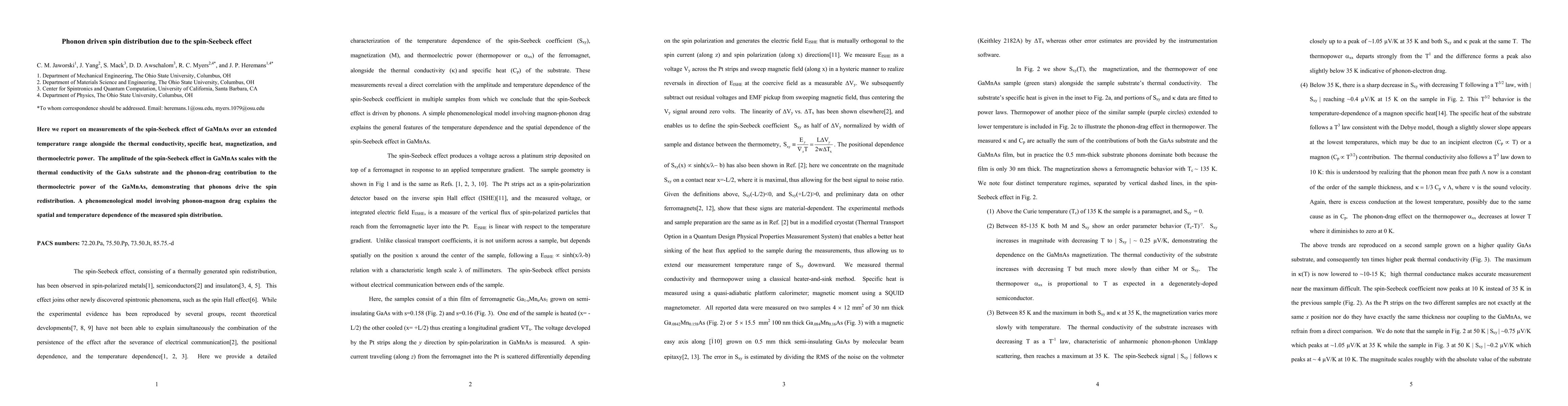 This study investigates the spin-Seebeck effect in GaMnAs, demonstrating that phonons drive spin redistribution, with the effect's amplitude linked to thermal conductivity and phonon-drag contributions. A phenomenological model explains the spatial and temperature-dependent spin distribution.