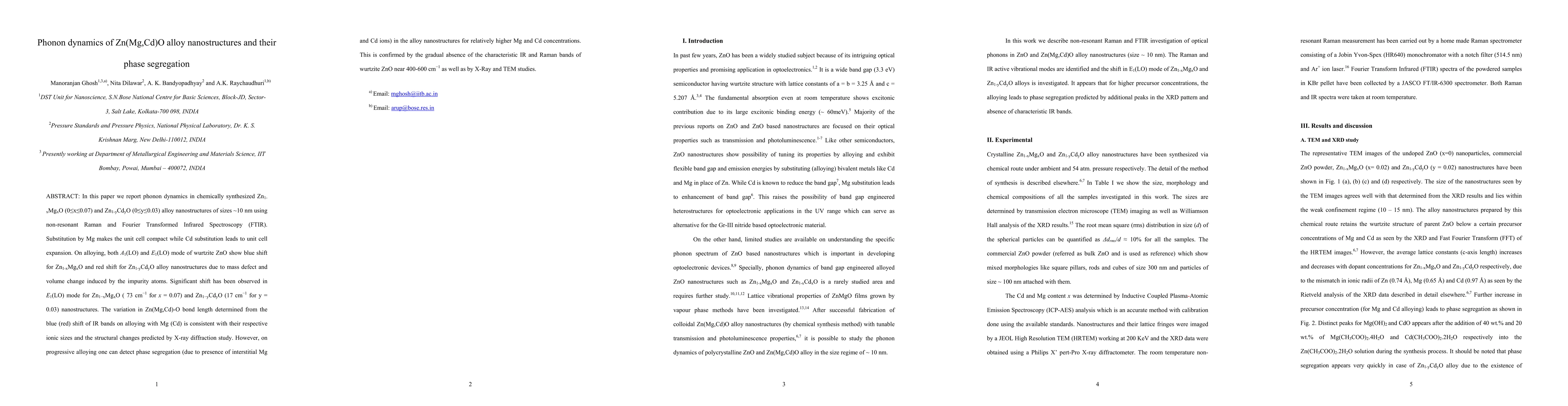 This paper investigates the phonon dynamics of Zn(Mg,Cd)O alloy nanostructures, finding that Mg substitution causes a blue shift while Cd substitution results in a red shift due to mass defect and volume change. Phase segregation is also detected at higher Mg and Cd concentrations.