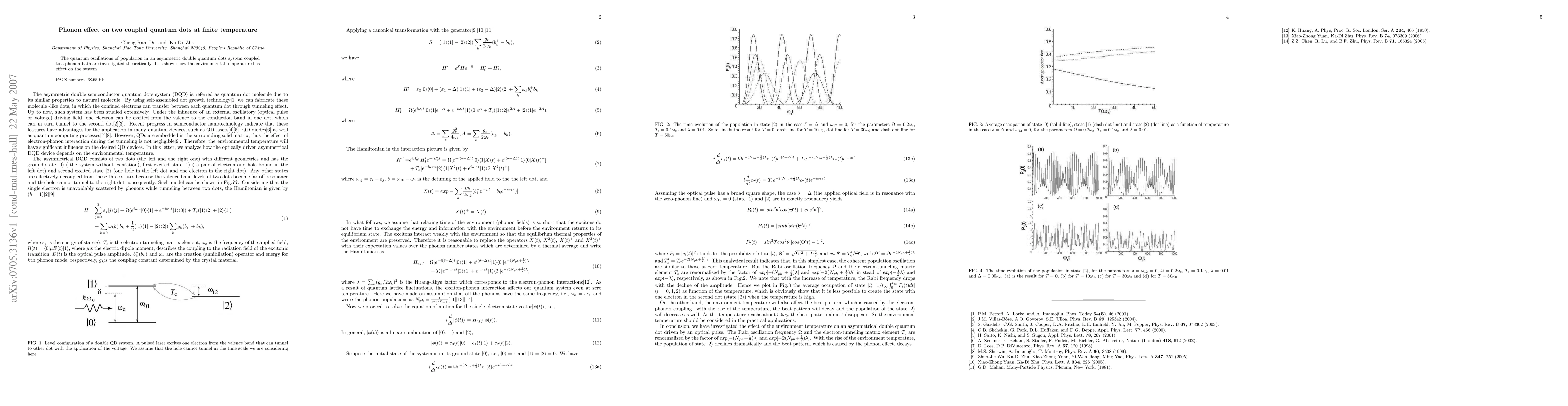 Summary: This paper investigates quantum oscillations in an asymmetric double quantum dot system coupled to phonons, demonstrating that environmental temperature significantly influences the system's behavior.