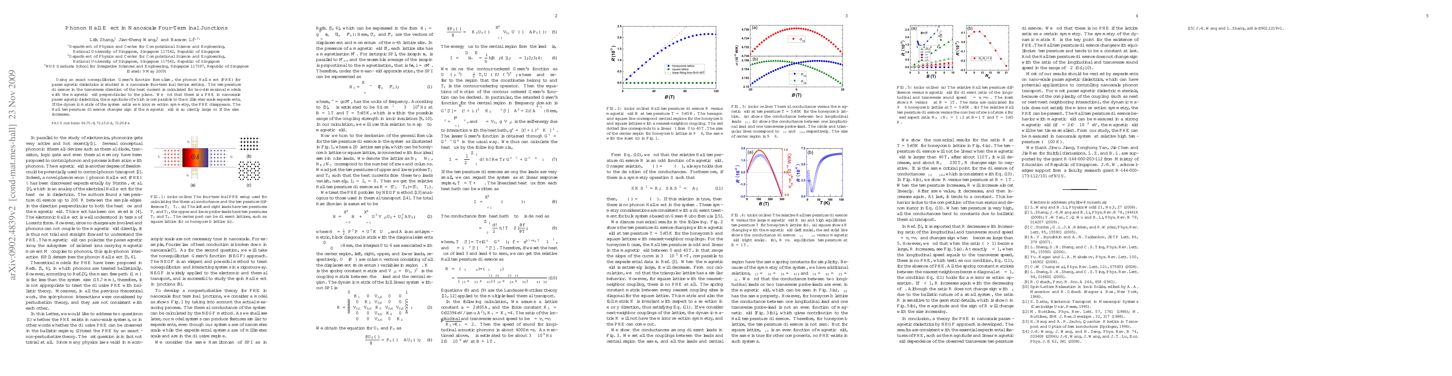 The study reveals that phonon Hall effect in four-terminal junctions varies with lattice structure; square lattices lack this effect, while honeycomb lattices exhibit it due to symmetry considerations. The temperature difference in the transverse heat current changes sign with a sufficiently large magnetic field.