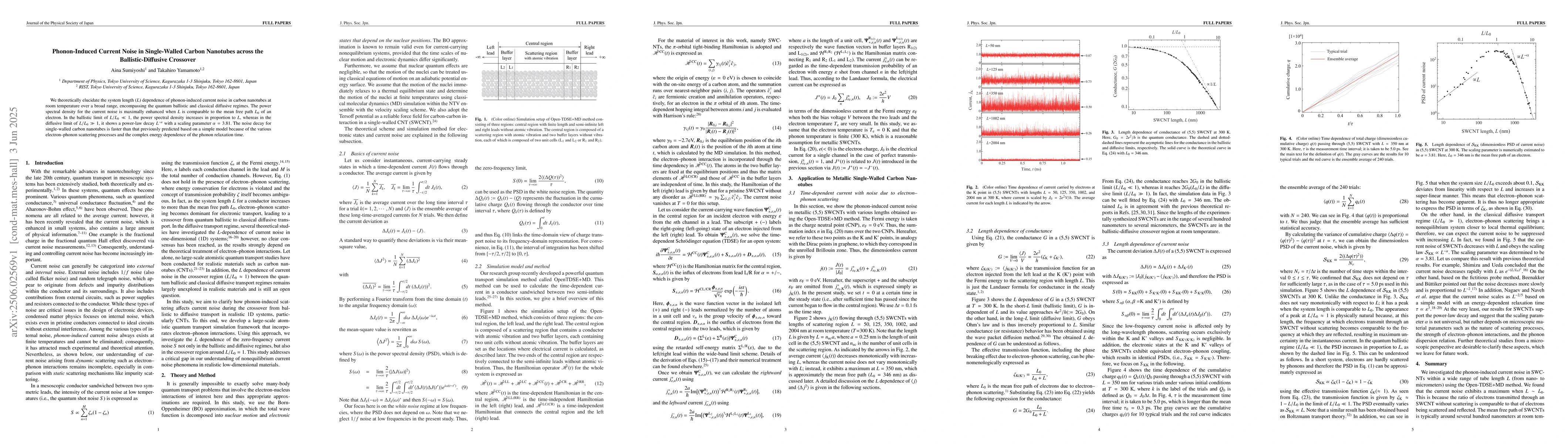 We theoretically elucidate the system length ($L$) dependence of phonon-induced current noise in carbon nanotubes at room temperature over a broad range, encompassing the quantum ballistic and classical diffusive regimes. The power spectral density for the current noise is maximally enhanced when $L$ is comparable to the mean free path $L_0$ of an electron. In the ballistic limit of $L/L_0\ll 1$, the power spectral density increases in proportion to $L$, whereas in the diffusive limit of $L/L_0\gg 1$, it shows a power-law decay $L^{-\alpha}$ with a scaling parameter $\alpha=3.81$. The noise decay for single-walled carbon nanotubes is faster than that previously predicted based on a simple model because of the various electron-phonon scattering processes and the complex energy dependence of the phonon relaxation time.