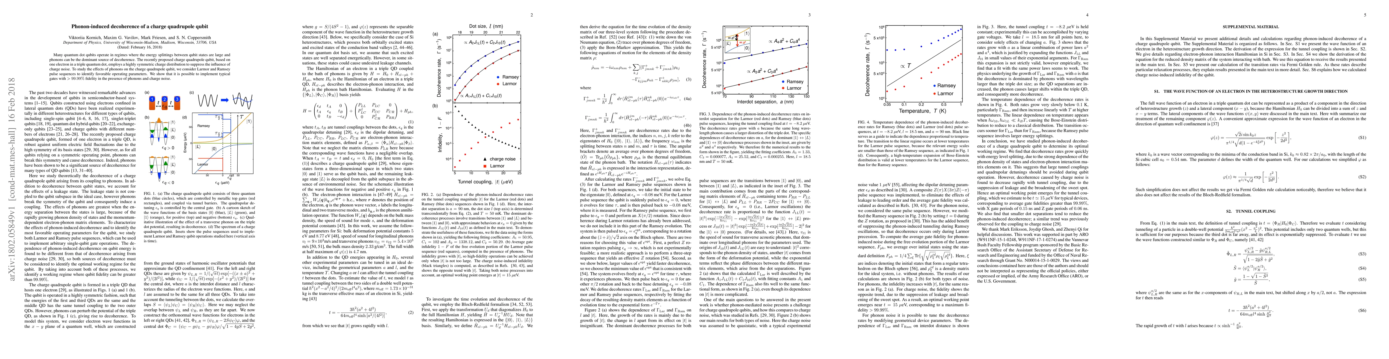 This paper investigates phonon-induced decoherence in a charge quadrupole qubit, which uses a symmetric charge distribution to minimize noise. The study finds that despite phonons being the dominant source of decoherence, it is possible to achieve gate fidelity over 99.99% using Larmor and Ramsey pulse sequences.
