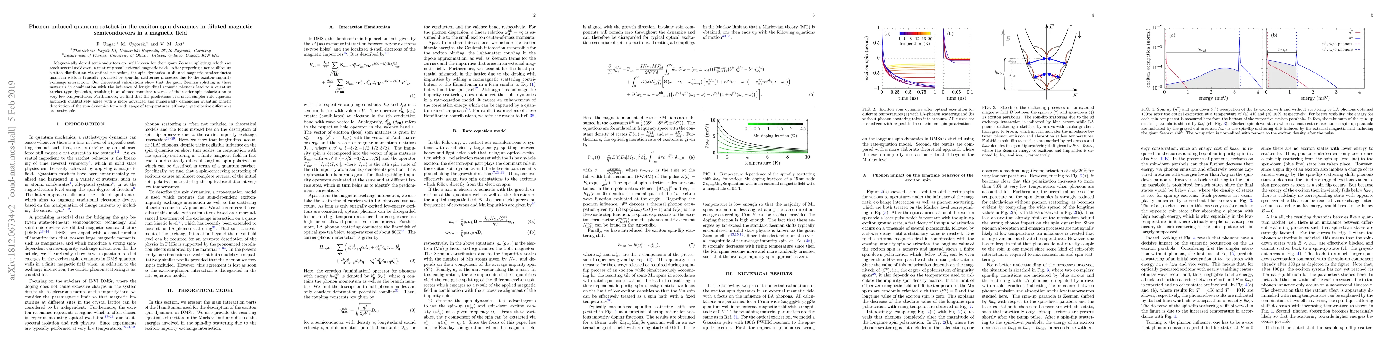 This paper investigates the phonon-induced quantum ratchet effect on exciton spin dynamics in diluted magnetic semiconductors under a magnetic field, revealing a complete spin polarization reversal due to giant Zeeman splitting and phonon interactions. Theoretical calculations show that a rate-equation approach provides qualitative agreement with a quantum kinetic model for spin dynamics across various temperatures.