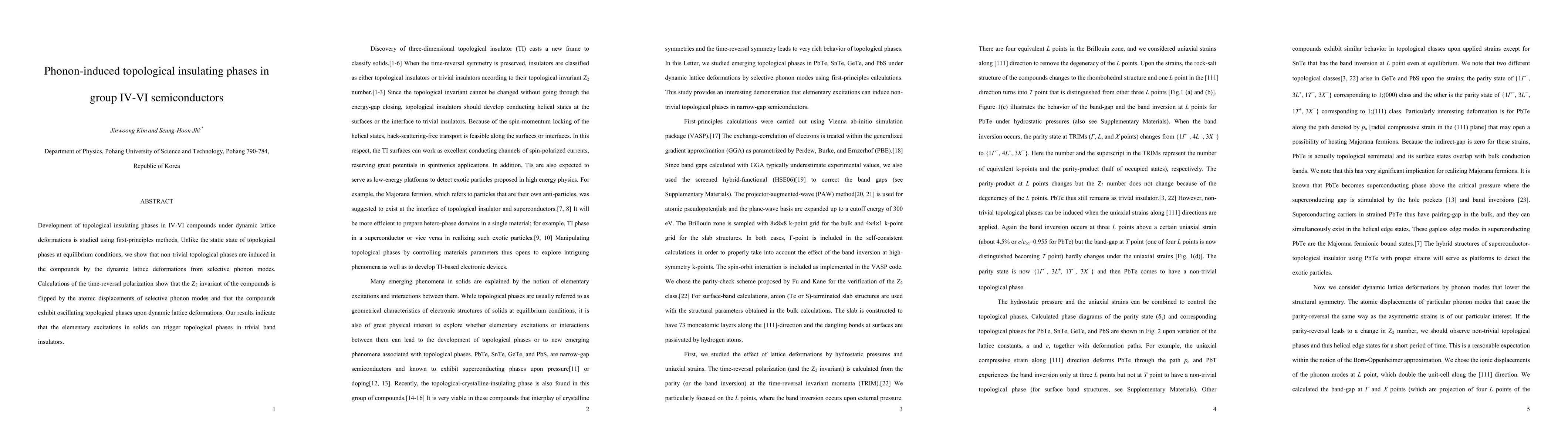 This research demonstrates that dynamic lattice deformations from specific phonon modes can induce non-trivial topological insulating phases in IV-VI semiconductors, as evidenced by the flipping of the Z2 invariant and oscillating topological behavior. The findings suggest that phonon excitations can trigger topological phases in otherwise trivial band insulators.