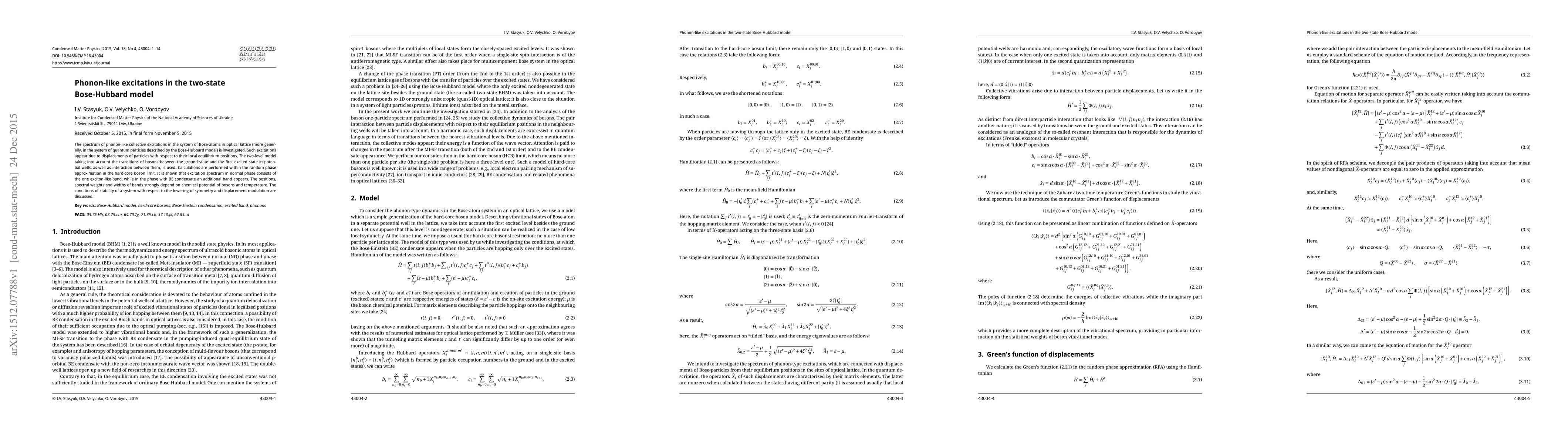 This paper investigates phonon-like collective excitations in the Bose-Hubbard model, revealing an exciton-like band in the normal phase and an additional band in the Bose-Einstein condensate phase. The study highlights the dependence of excitation spectrum on chemical potential and temperature.