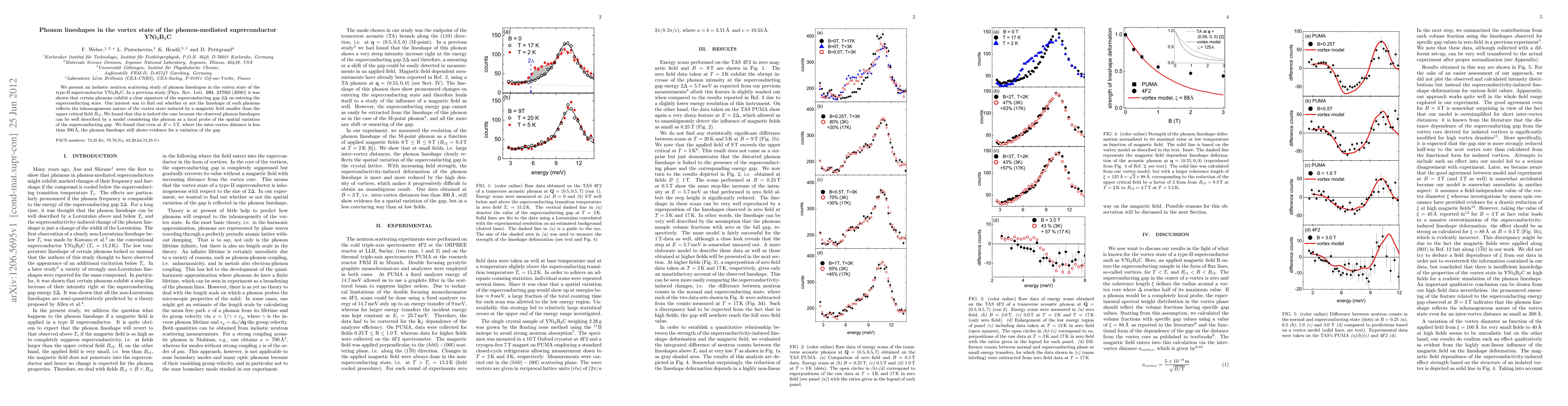 We present an inelastic neutron scattering study of phonon lineshapes in the vortex state of the type-II superconductor YNi$_2$B$_2$C. In a previous study [Phys. Rev. Lett. \textbf{101}, 237002 (2008)] it was shown that certain phonons exhibit a clear signature of the superconducting gap $2\Delta$ on entering the superconducting state. Our interest was to find out whether or not the lineshape of such phonons reflects the inhomogeneous nature of the vortex state induced by a magnetic field smaller than the upper critical field $B_{c2}$ .We found that this is indeed the case because the observed phonon lineshapes can be well described by a model considering the phonon as a local probe of the spatial variation of the superconducting gap. We found that even at $B=3\,\rm{T}$, where the inter-vortex distance is less than $300\,$\AA, the phonon lineshape still shows evidence for a variation of the gap.