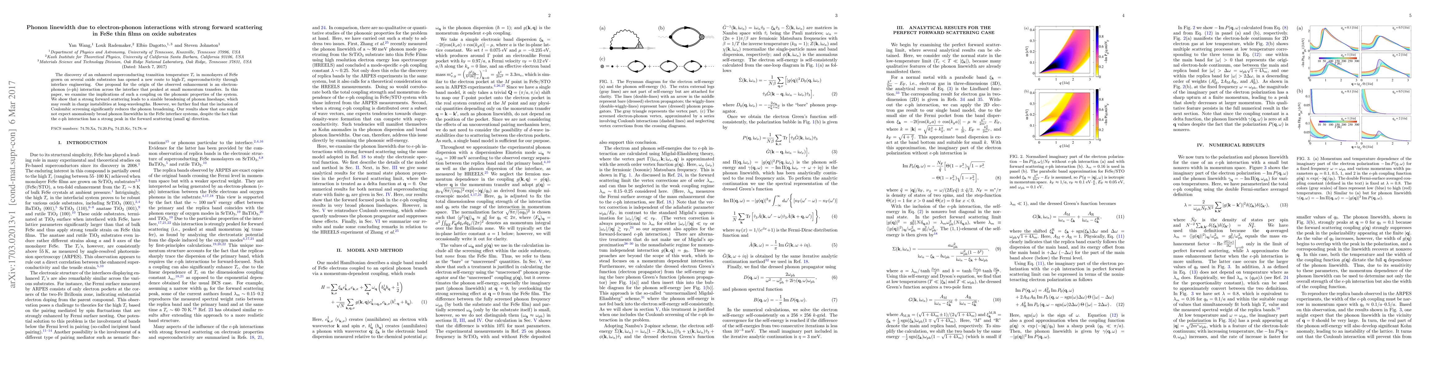 This paper investigates the phonon linewidth in FeSe thin films on oxide substrates due to electron-phonon interactions, finding that strong forward scattering leads to significant phonon broadening. However, Coulombic screening mitigates this effect, suggesting that anomalously broad phonon linewidths may not occur in these interface systems.
