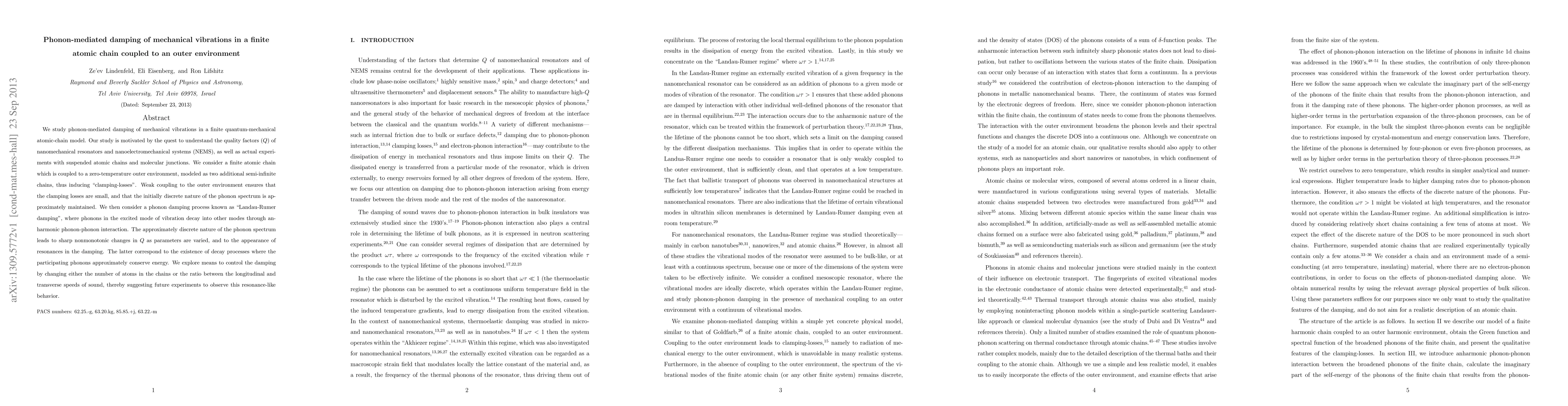 This paper investigates phonon-mediated damping in a finite atomic chain coupled to an outer environment, focusing on "Landau-Rumer damping" and its impact on quality factors in nanomechanical systems. The study reveals sharp nonmonotonic changes in damping and resonance-like behaviors that can be controlled by altering chain length or sound speed ratios.