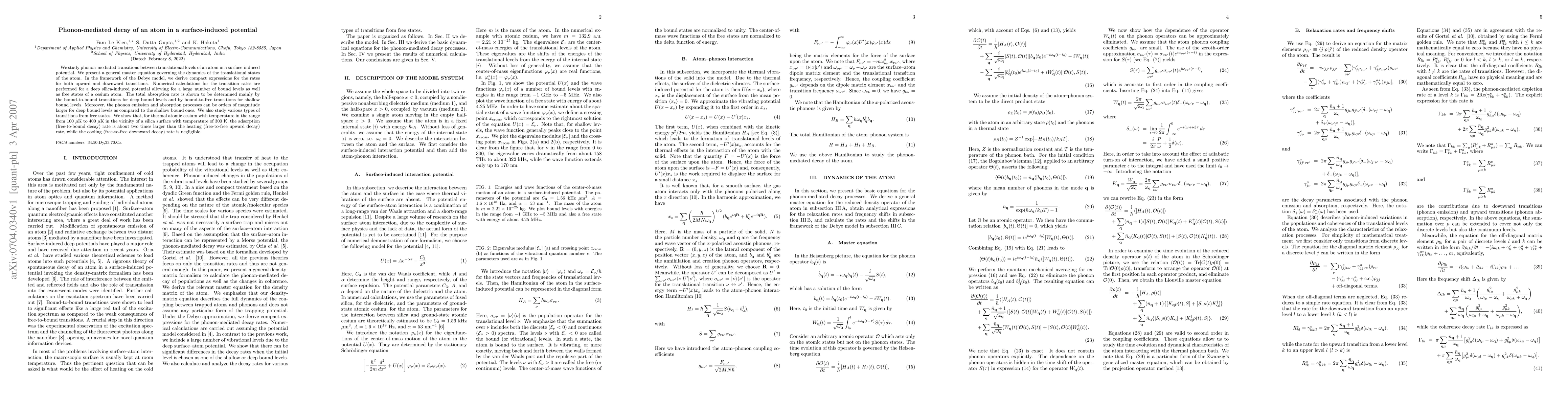 Researchers studied how phonons affect an atom's decay in a surface-induced potential, finding that deep bound levels have higher absorption rates than shallow ones, while thermal atomic cesium has a faster adsorption rate than heating rate at temperatures around 100-400 $µ$K.