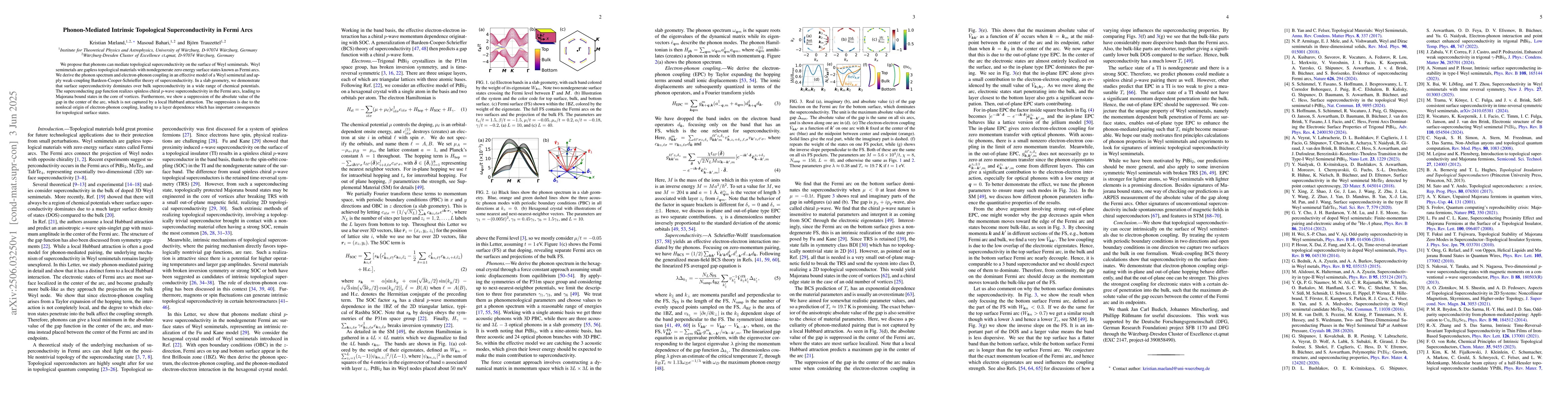 The paper presents a theoretical framework linking phonons, electron-phonon coupling, and topological superconductivity in Weyl semimetal Fermi arcs, predicting unique gap suppression patterns and Majorana fermion formation.