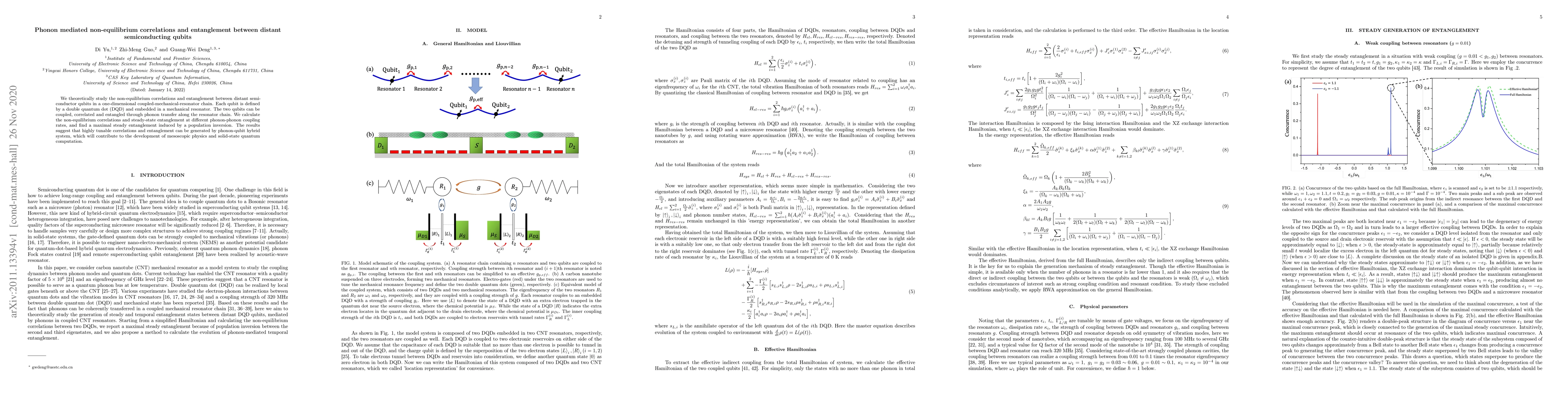 This paper investigates non-equilibrium correlations and entanglement between distant semiconductor qubits in a phonon-coupled chain of mechanical resonators. The study finds maximal steady-state entanglement through phonon-mediated interactions, suggesting potential for tunable correlations and advancements in solid-state quantum computation.