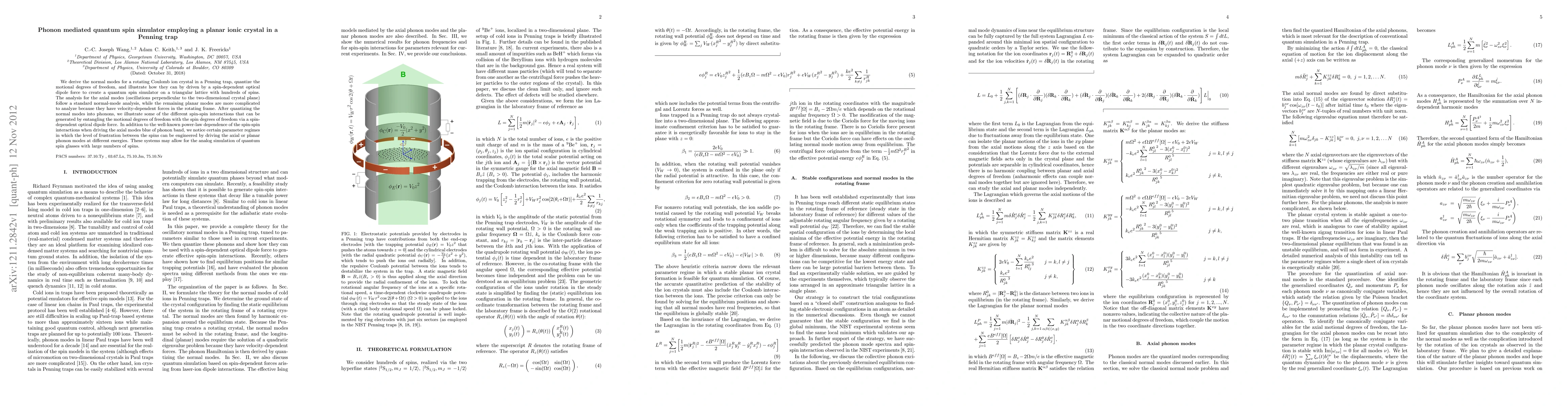 This paper develops a quantum spin simulator using phonon-mediated interactions in a planar ionic crystal within a Penning trap, driven by a spin-dependent optical dipole force. It explores the complex dynamics of planar modes and demonstrates how phonons can be engineered to simulate quantum spin glasses on a triangular lattice.