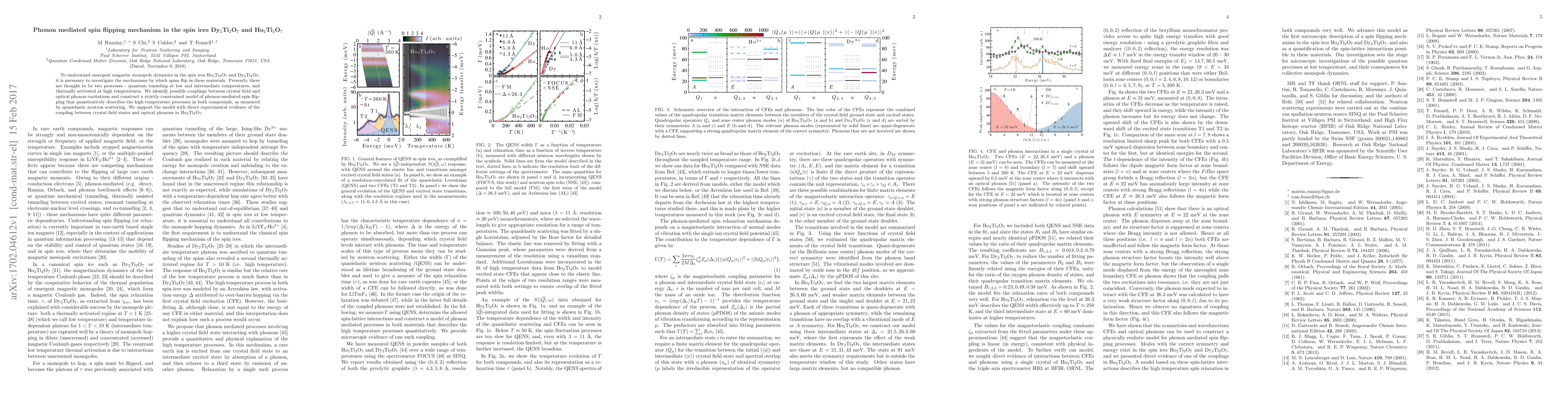 This paper identifies phonon-mediated spin-flipping mechanisms in spin ices Ho$_2$Ti$_2$O$_7$ and Dy$_2$Ti$_2$O$_7$, proposing a model that explains high-temperature spin dynamics through coupling between crystal field states and optical phonons, supported by quasielastic neutron scattering and experimental evidence.