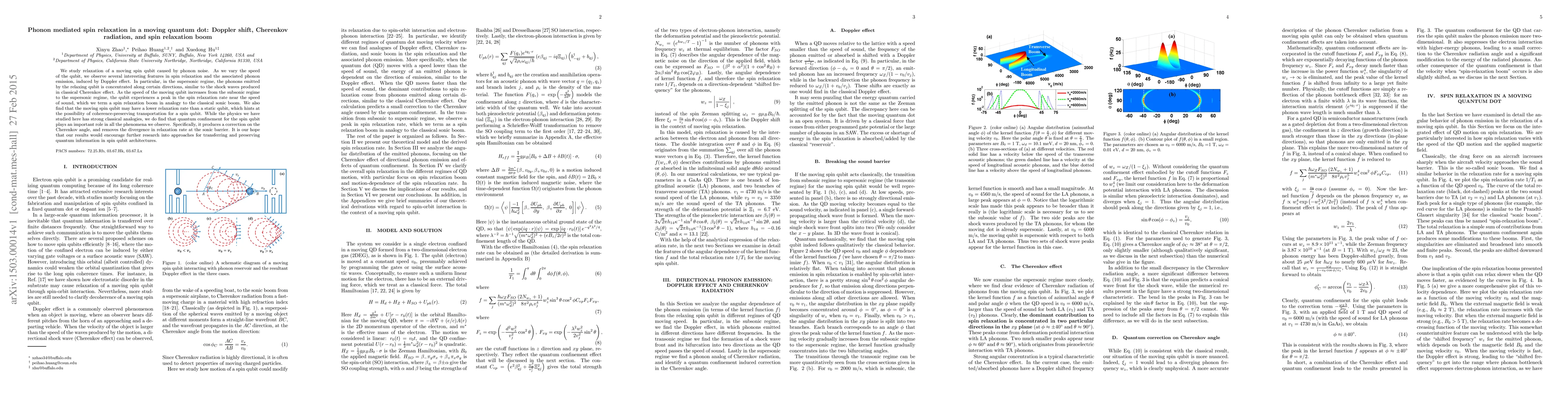 This paper investigates phonon-mediated spin relaxation in a moving quantum dot, revealing a peak in relaxation rate—a "spin relaxation boom"—when the qubit exceeds the speed of sound, akin to the classical Cherenkov effect. Quantum confinement modifies these phenomena, suggesting potential for coherence-preserving transportation of spin qubits.