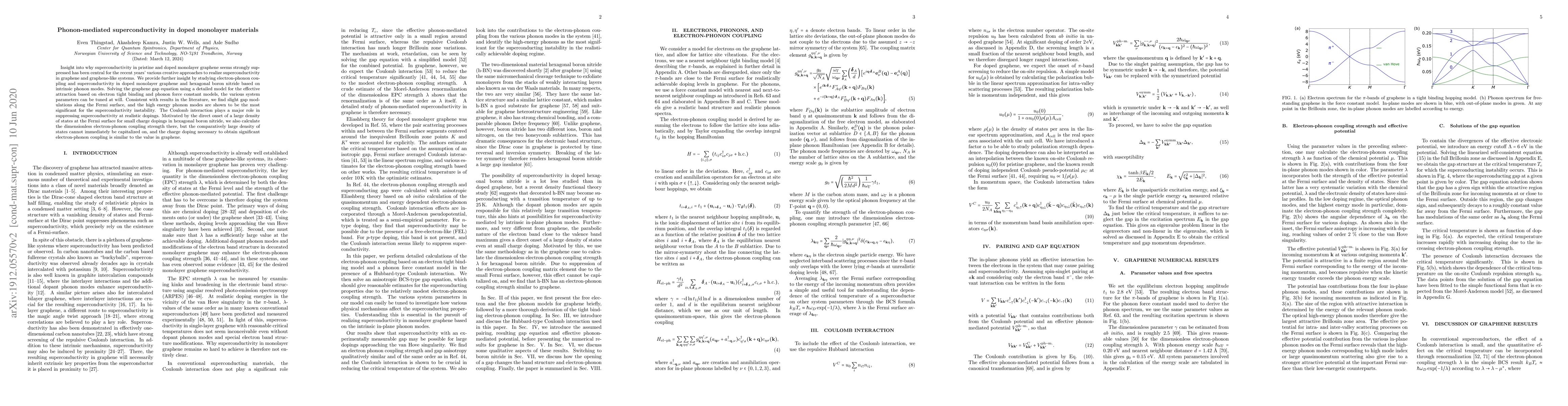 This paper investigates the role of phonon-mediated superconductivity in doped monolayer graphene and hexagonal boron nitride, revealing that high energy phonon modes significantly influence superconductivity. The study finds that while the Coulomb interaction suppresses superconductivity, the large density of states in hexagonal boron nitride does not immediately enhance superconductivity due to the required charge doping levels.