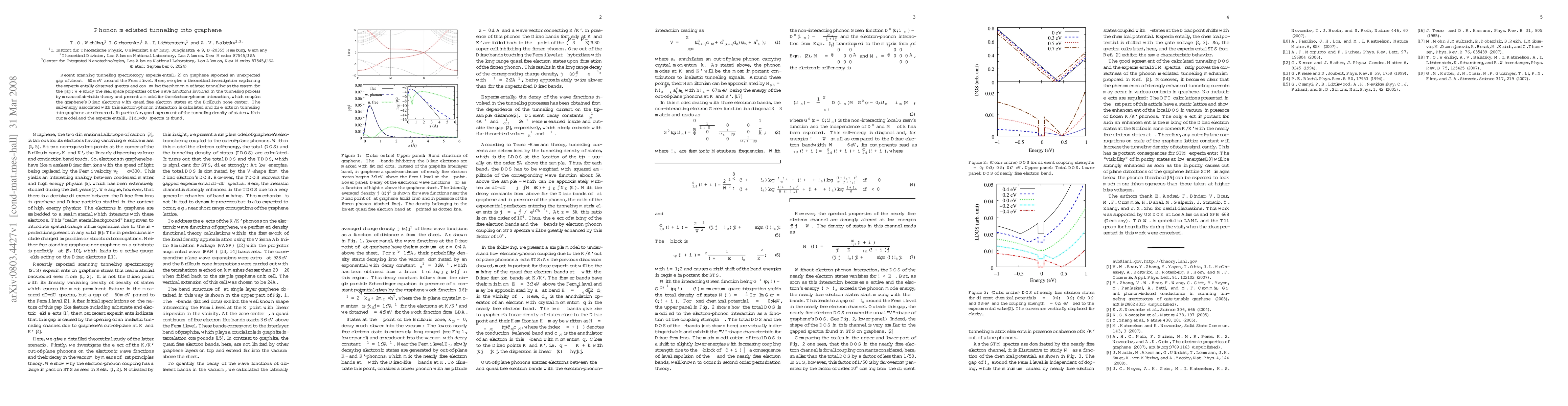 This paper presents a theoretical model explaining the unexpected $\pm 60$meV gap around the Fermi level in graphene, attributing it to phonon-mediated tunneling. The model aligns well with experimental tunneling spectra, confirming the electron-phonon interaction's role in shaping the graphene's tunneling density of states.