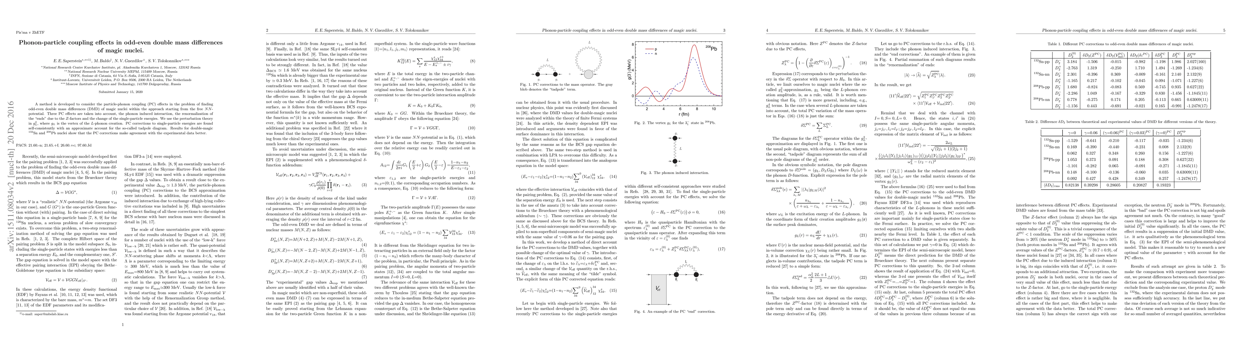 The development of a method to incorporate particle-phonon coupling effects in calculating odd-even double mass differences of magic nuclei, using perturbation theory in $g^2_L$ and accounting for phonon-induced interaction, end renormalization, and changes in single-particle energies.