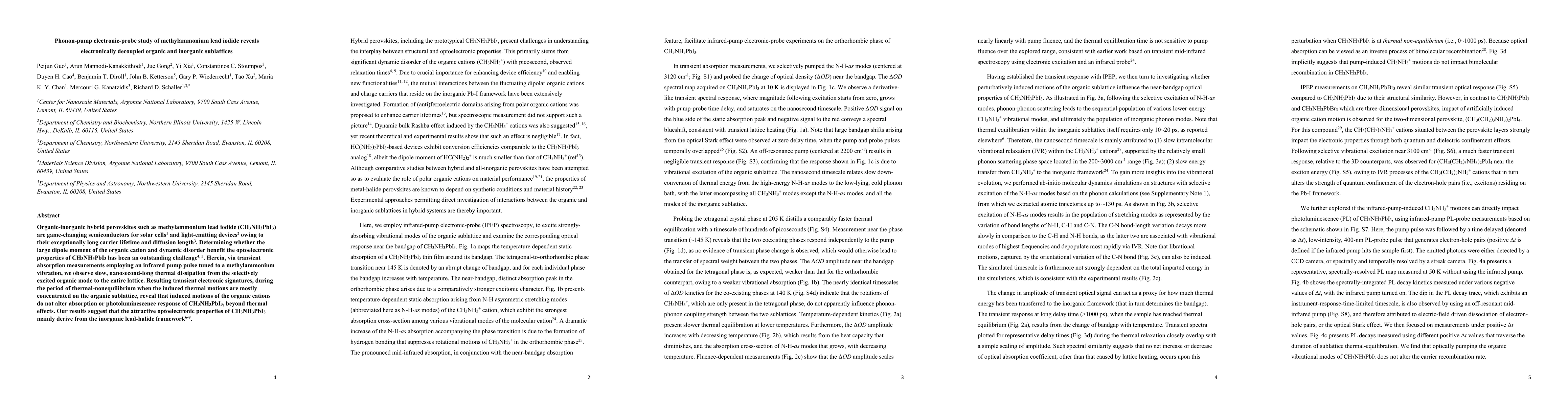 This study uses phonon-pump transient absorption to investigate methylammonium lead iodide, revealing that the organic and inorganic sublattices are electronically decoupled. The findings suggest that the optoelectronic properties of the perovskite are primarily due to the inorganic framework, not the organic cations.