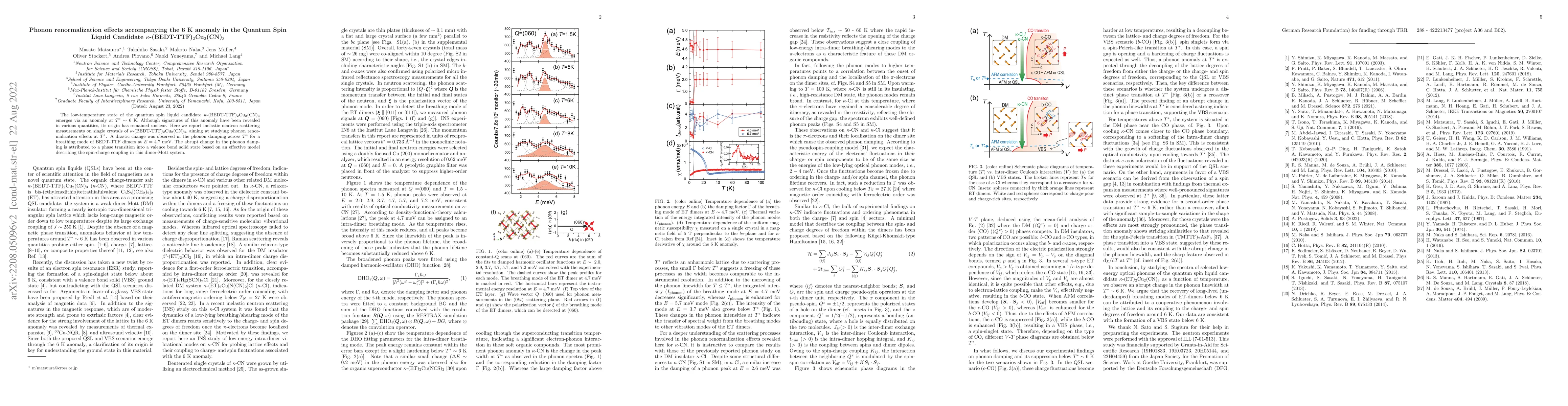 This paper reports on inelastic neutron scattering measurements revealing a drastic change in phonon damping at $T^{*}\sim6$ K in $\kappa$-(BEDT-TTF)$_{2}$Cu$_{2}$(CN)$_{3}$, suggesting a phase transition into a valence bond solid state due to phonon renormalization effects.