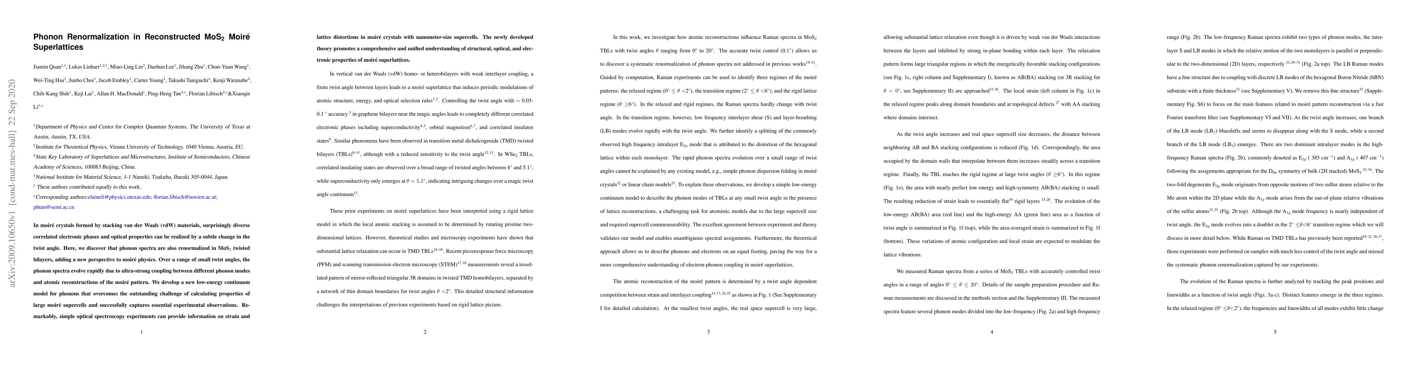 In moir\'e crystals formed by stacking van der Waals (vdW) materials, surprisingly diverse correlated electronic phases and optical properties can be realized by a subtle change in the twist angle. Here, we discover that phonon spectra are also renormalized in MoS$_2$ twisted bilayers, adding a new perspective to moir\'e physics. Over a range of small twist angles, the phonon spectra evolve rapidly due to ultra-strong coupling between different phonon modes and atomic reconstructions of the moir\'e pattern. We develop a new low-energy continuum model for phonons that overcomes the outstanding challenge of calculating properties of large moir\'e supercells and successfully captures essential experimental observations. Remarkably, simple optical spectroscopy experiments can provide information on strain and lattice distortions in moir\'e crystals with nanometer-size supercells. The newly developed theory promotes a comprehensive and unified understanding of structural, optical, and electronic properties of moir\'e superlattices.