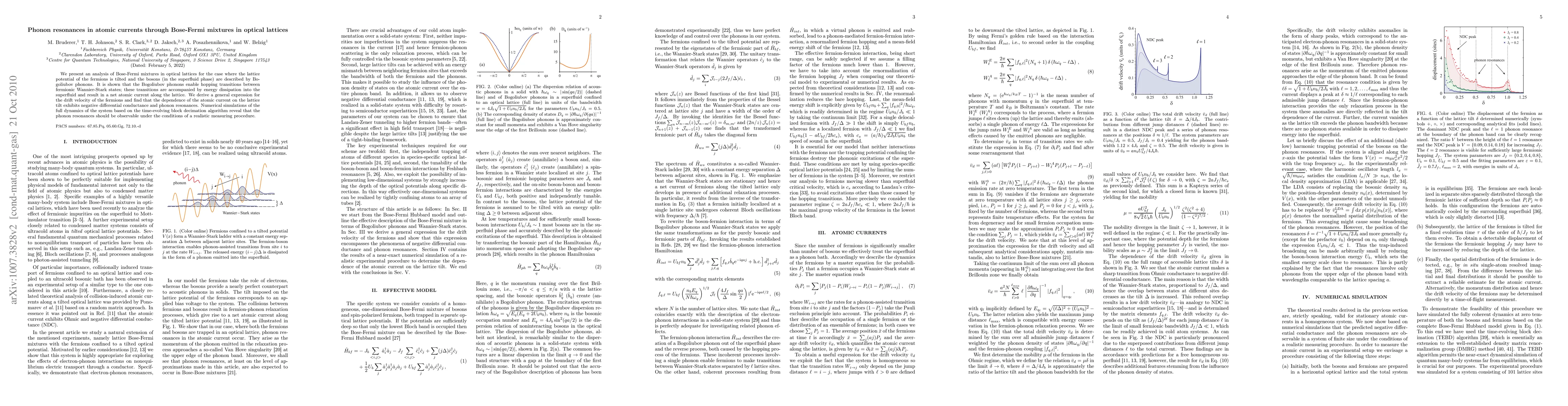 Researchers study how bosons and fermions interact in optical lattices, discovering that phonon resonances can create a net atomic current when the lattice potential is tilted. The findings have implications for understanding transport properties in exotic matter.