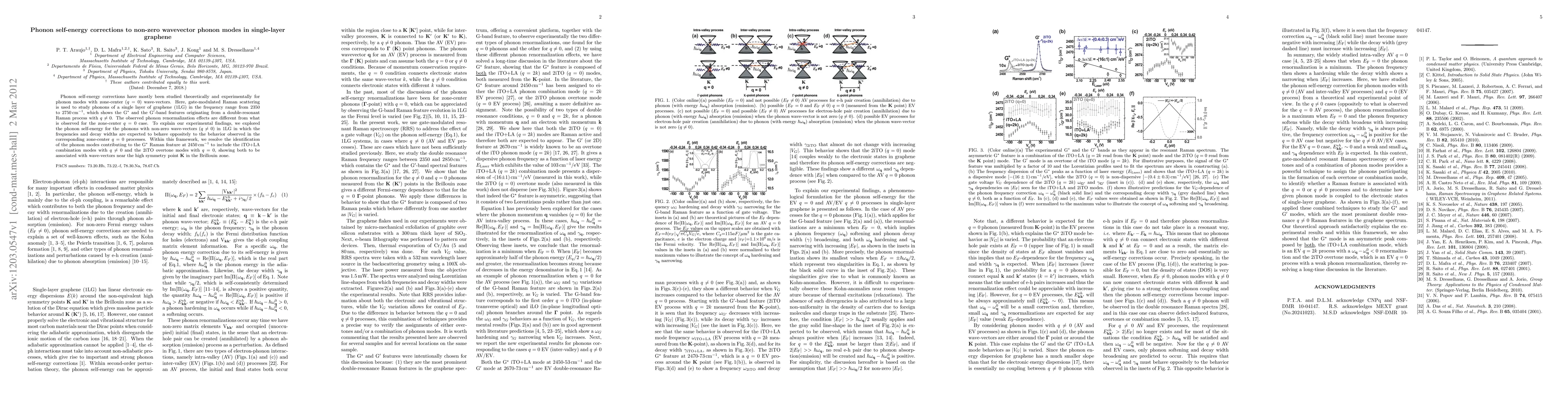 This paper investigates phonon self-energy corrections in single-layer graphene for phonon modes with non-zero wavevectors, using gate-modulated Raman scattering. It finds distinct phonon renormalization effects compared to zone-center modes, resolving the G* Raman feature contributions to include non-zero wavevector iTO+LA combination modes and zero wavevector 2iTO overtone modes.